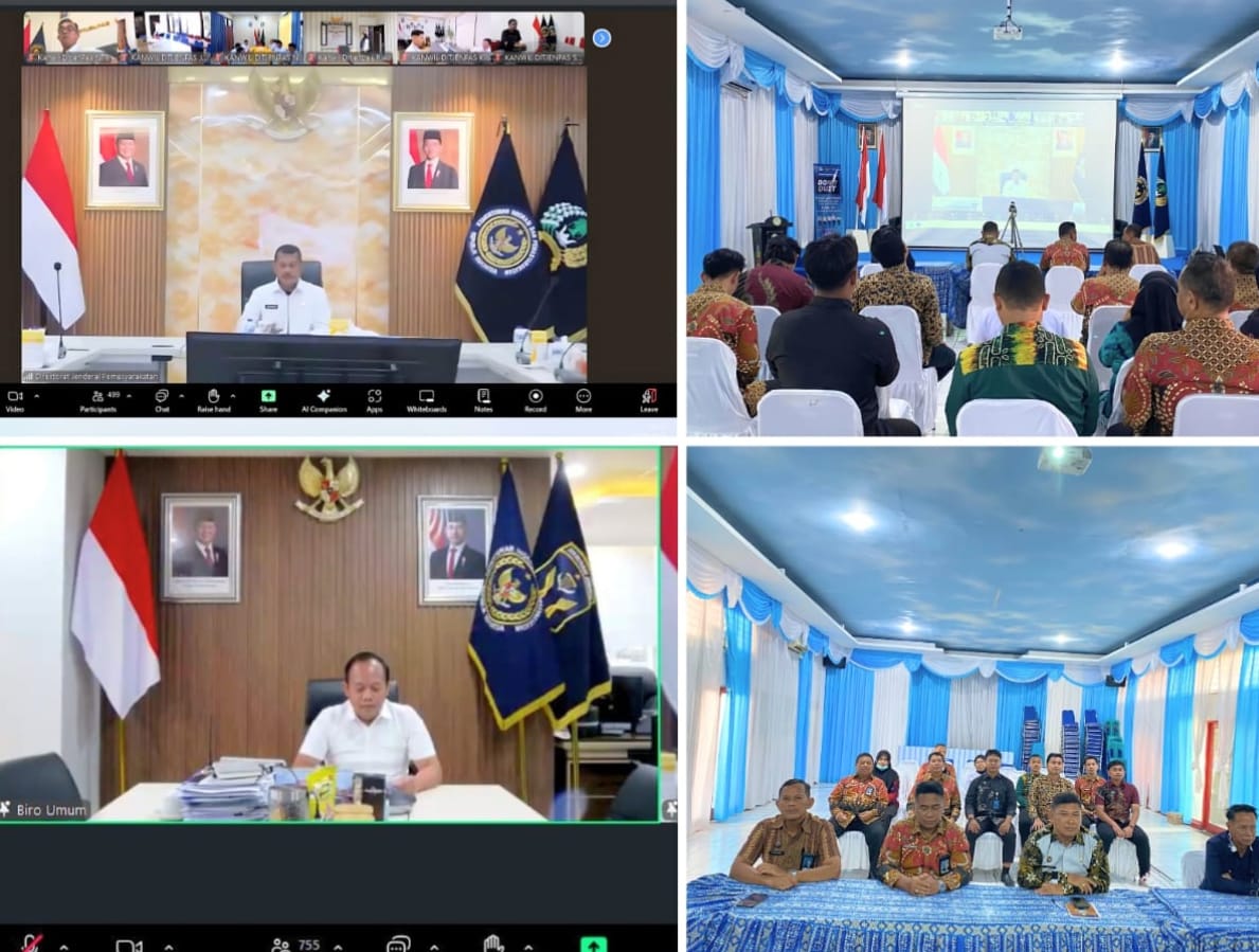 Kalapas Kelas IIA Banjarmasin, Akhmad Herriansyah, bersama jajaran struktural dan staf kegiatan kerja (Giatja) mengikuti arahan Direktur Jenderal Pemasyarakatan (Dirjenpas) secara virtual, Kamis (04/09). Arahan tersebut terkait persiapan kegiatan penanaman pohon kelapa serentak dan launching yang dipusatkan di Nusa Kambangan.