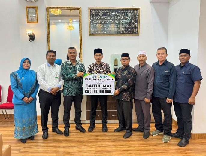 Meulaboh (METROZONE.net) – Bank Aceh Syariah Cabang Meulaboh menyerahkan zakat perusahaan dan zakat karyawan tahun buku 2024 dengan nilai total sebesar Rp534.062.360,- yang terdiri dari zakat perusahaan Rp 500.000.000,- dan zakat karyawan sebesar Rp 34.062. 360,- kepada Pemerintah Kabupaten Aceh Barat untuk disalurkan melalui Baitul Mal Aceh Barat