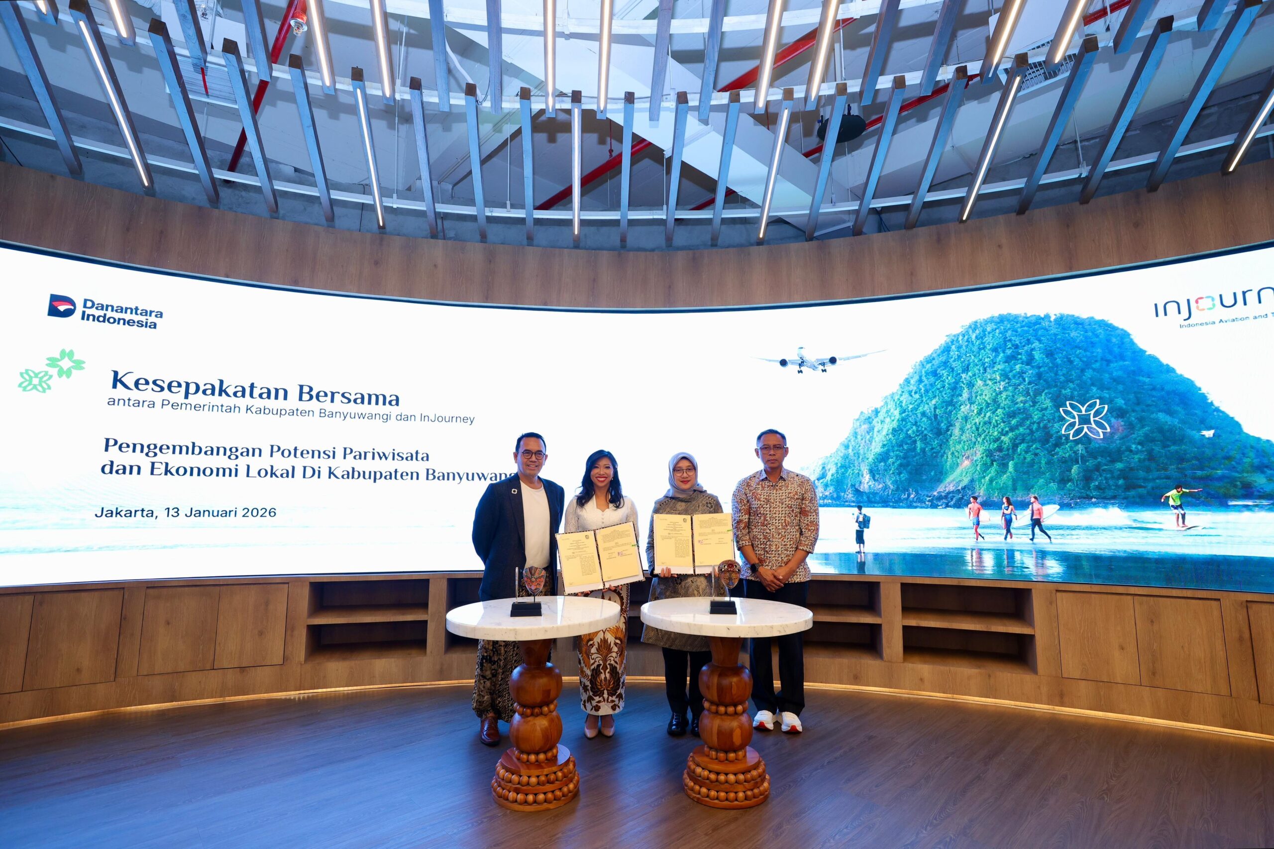 Banyuwangi, Metrozone.net- Guna meningkatkan dunia pariwisata dan penerbangan Banyuwangi, Bupati Ipuk Fiestiandani menandatangani kerjasama dengan InJourney. Kerjasama tersebut telah diteken langsung oleh Bupati Ipuk dan Direktur Utama InJourney Maya Watono, di Jakarta, Selasa (13/1/2026).