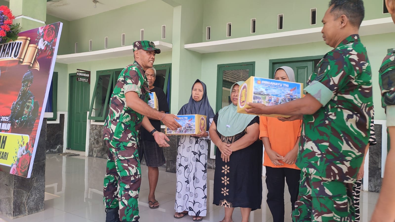 Kegiatan dipimpin langsung oleh Danramil 0825-03/Glagah bersama seluruh anggota. Dengan penuh kepedulian, para prajurit TNI membagikan paket sembako kepada masyarakat sekitar sebagai wujud nyata kepedulian TNI terhadap kesejahteraan rakyat.