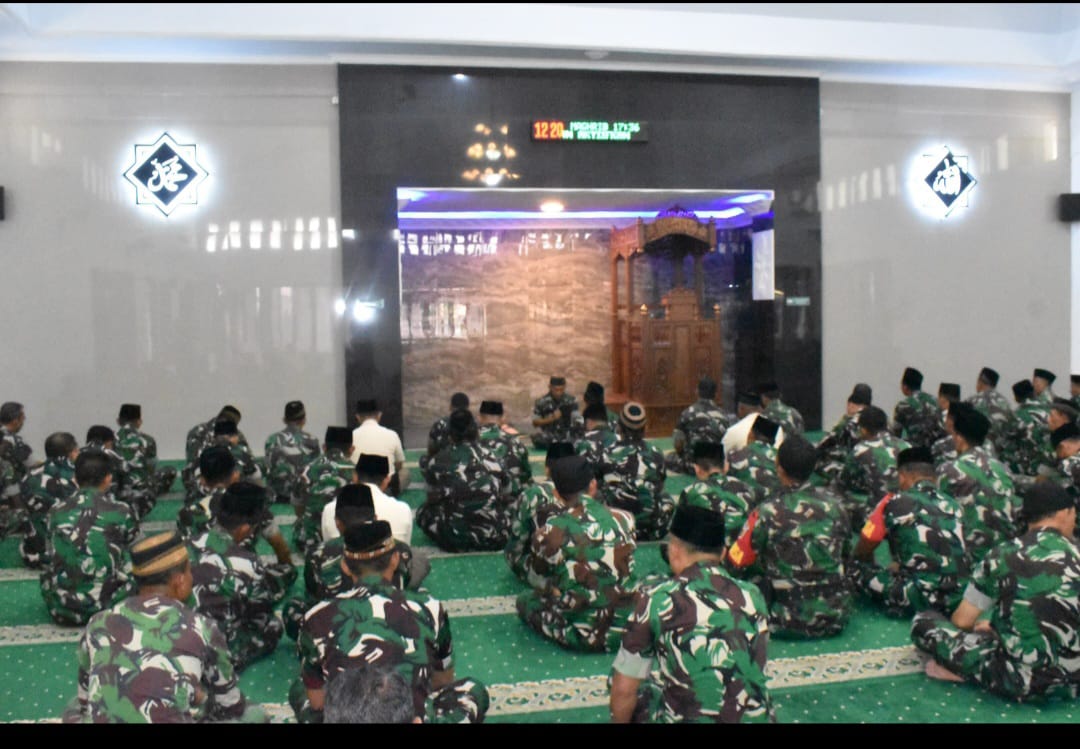 Doa bersama tersebut turut dihadiri oleh Dandim 0825/Banyuwangi Letkol Arm Triyadi Indrawijaya, S.H., M.I.P., Kasdim 0825 Mayor Kav Suprapto, para perwira staf, jajaran Danramil, anggota Kodim, serta para PNS Kodim 0825 Banyuwangi. Rangkaian kegiatan diawali dengan pelaksanaan salat Jumat oleh seluruh personel, yang kemudian dilanjutkan dengan doa bersama dipimpin Serda El Hakim Kurniawan. Momentum ini menjadi wadah refleksi dan penguatan moral bagi para prajurit dalam menjalankan tugas pengabdian.