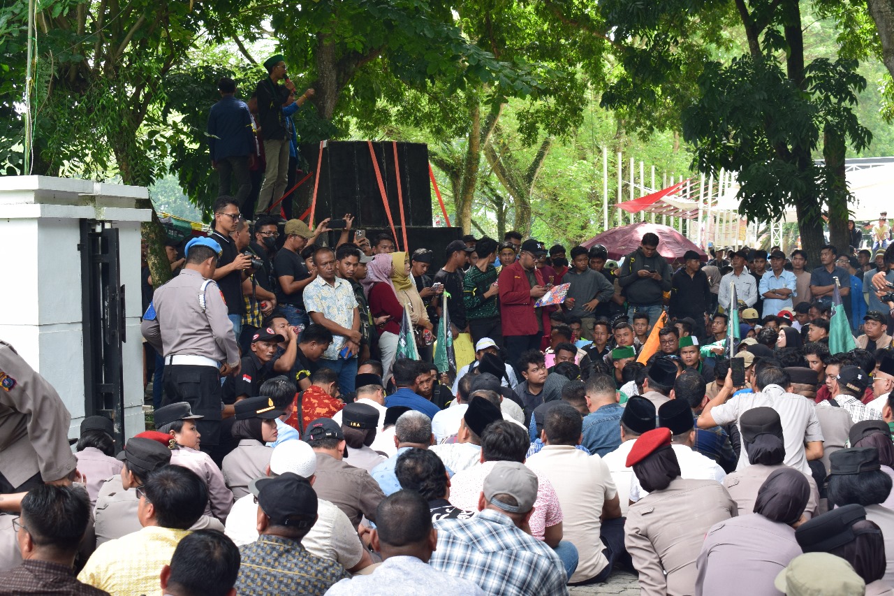 Langkat, Metrozone.net- Ratusan mahasiswa yang tergabung dalam Aliansi Mahasiswa, Pemuda dan Masyarakat Langkat menggelar aksi damai di depan gedung Dewan Perwakilan Rakyat Daerah (DPRD) Kabupaten Langkat untuk menyampaikan aspirasi terkait rencana kenaikan tunjangan perumahan anggota DPR RI, Senin (1/9/2025).