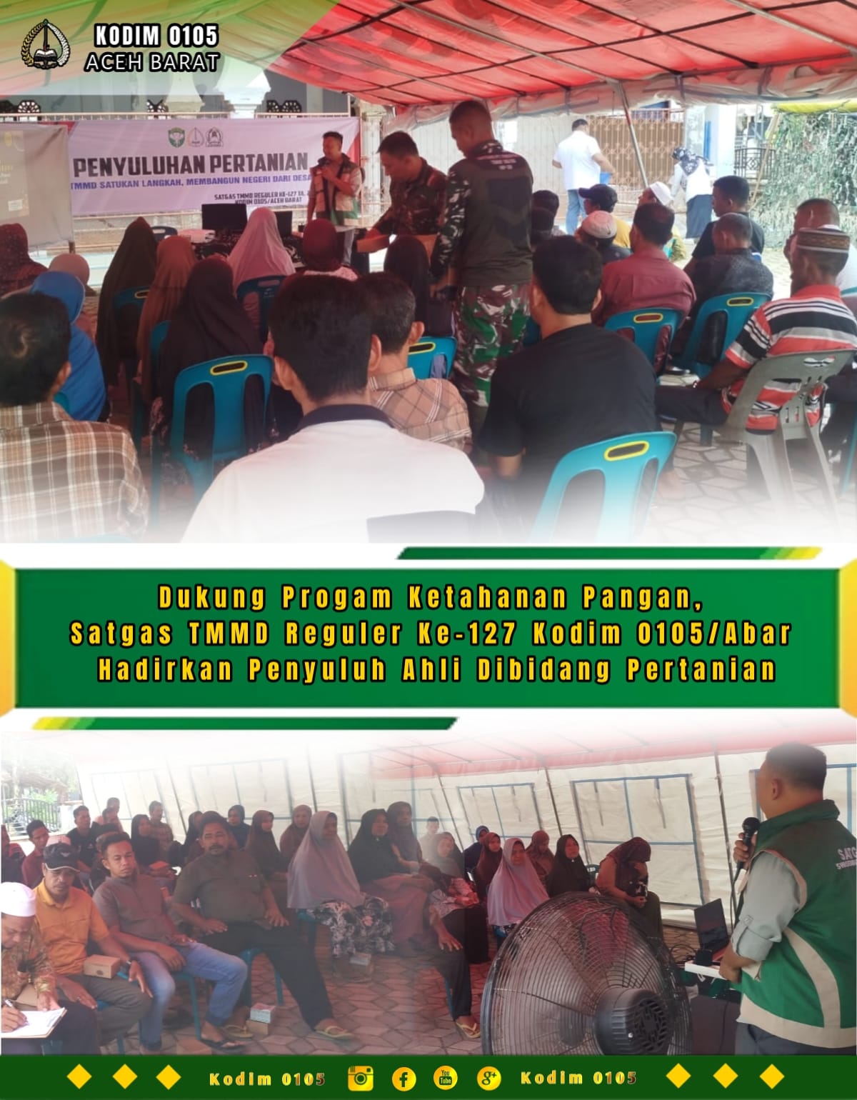 Kegiatan ini merupakan bentuk sinergi antara Satgas TMMD dengan Dinas Pertanian dalam upaya meningkatkan wawasan dan keterampilan para petani. Penyuluhan menghadirkan pemateri dari Dinas Pertanian, Yurnalis, S.P., M.Si., yang memberikan materi seputar teknik budidaya, pengelolaan lahan, hingga strategi peningkatan hasil panen guna menunjang Ketahanan Pangan daerah.