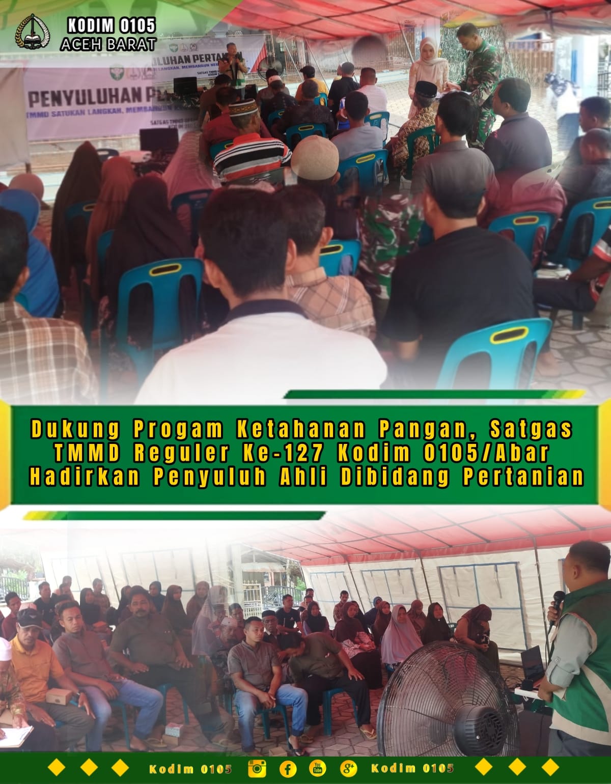 Kegiatan ini merupakan bentuk sinergi antara Satgas TMMD dengan Dinas Pertanian dalam upaya meningkatkan wawasan dan keterampilan para petani. Penyuluhan menghadirkan pemateri dari Dinas Pertanian, Yurnalis, S.P., M.Si., yang memberikan materi seputar teknik budidaya, pengelolaan lahan, hingga strategi peningkatan hasil panen guna menunjang Ketahanan Pangan daerah.