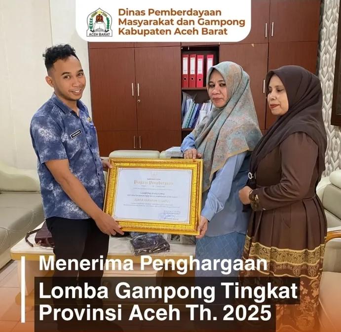 ​Penghargaan tersebut diberikan sebagai bentuk apresiasi atas keberhasilan Gampong Panggong, Kecamatan Johan Pahlawan, Kabupaten Aceh Barat, yang berhasil meraih Juara Harapan 1 pada Lomba Gampong Tingkat Provinsi Aceh Tahun 2025.