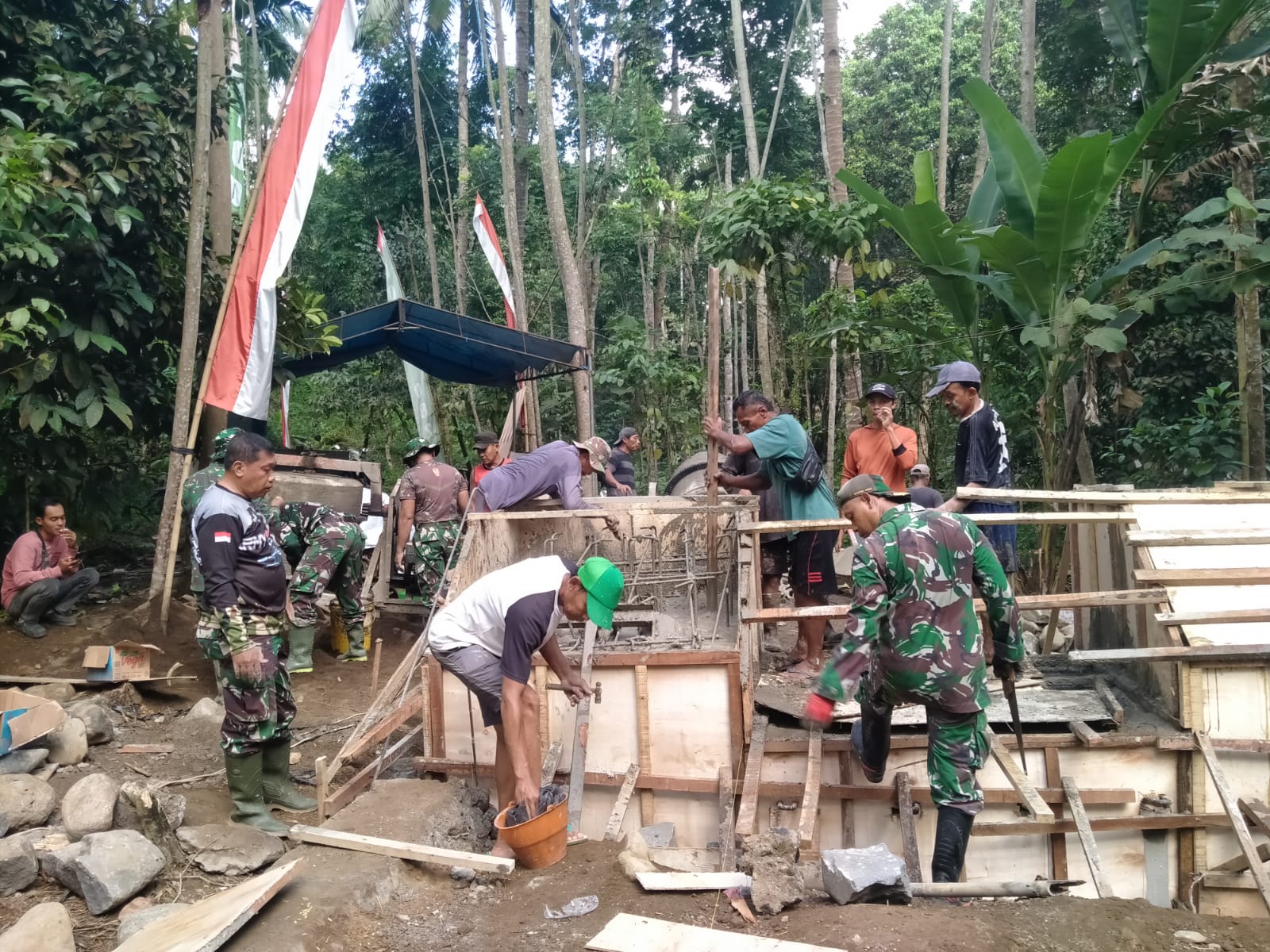 Anggota Sibang Kodim, hingga prajurit lintas satuan dari Koramil 0825/08 Srono, 12 Rogojampi, 13 Singojuruh, 14 Kabat, dan 0825/19 Sempu bergabung bersama warga Dusun Krajan dan Dusun Gumukcandi yang bekerja pundak-membahu.