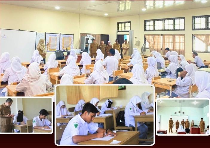 Dalam kunjungan tersebut, Kacabdin didampingi oleh Kepala Sub Bagian Tata Usaha, Roni Elfahmi, S.Si., M.Pd, serta Pengawas Sekolah, Khairil Anwar, S.Pd.I., M.Si. Kehadiran tim monitoring ini bertujuan untuk memastikan seluruh rangkaian ujian berjalan tertib, lancar, dan sesuai dengan standar operasional prosedur yang berlaku.
