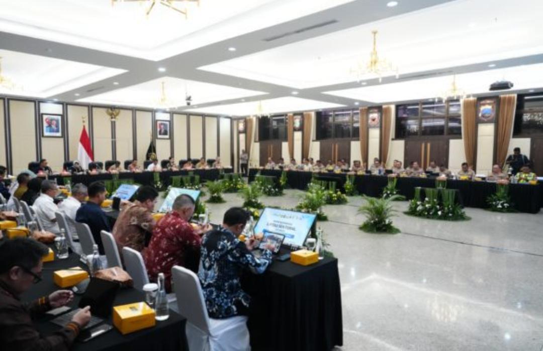 Rapat tersebut dipimpin langsung oleh Kapolri Jenderal Polisi Drs. Listyo Sigit Prabowo M.Si., dan turut dihadiri oleh Menteri Energi dan Sumber Daya Mineral (ESDM) Bahlil Lahadalia, Menteri Pertanian Andi Amran Sulaiman, Menteri Ketenagakerjaan Yassierli, Kementerian Dalam Negeri, serta pimpinan lembaga mulai dari Kepala BPS, Ketua Dewan Komisioner OJK, Deputi Gubernur BI, hingga perwakilan Kemendagri dan Pertamina.