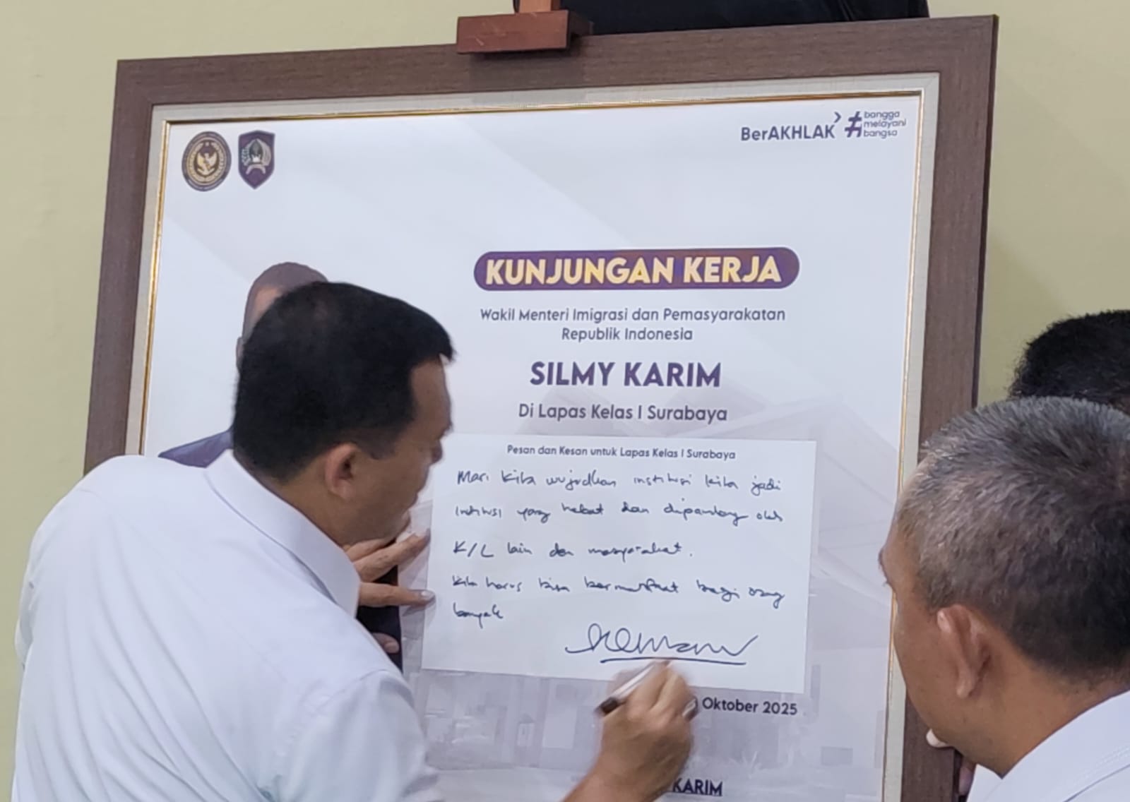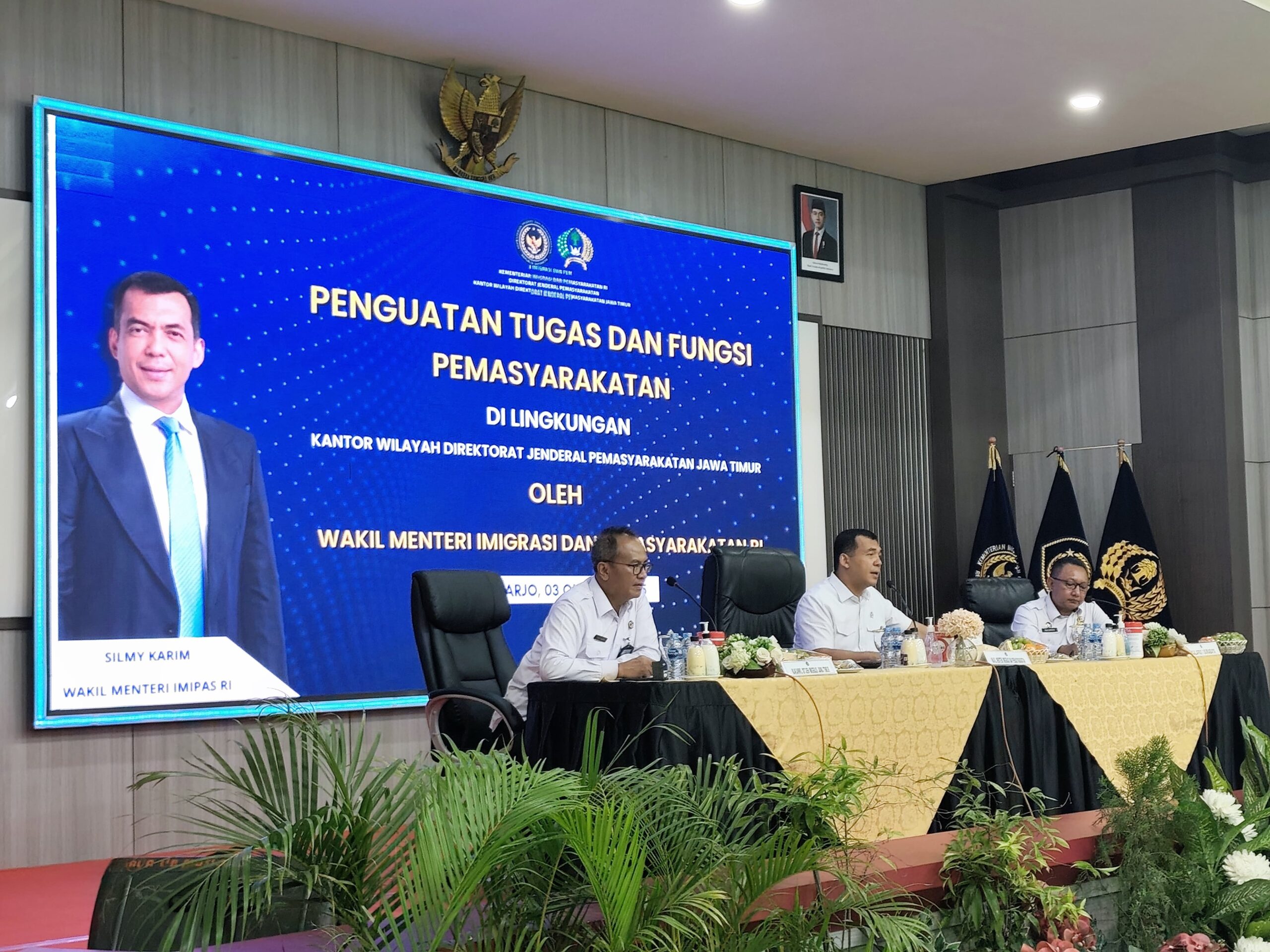 Sidoarjo, Metrozone.net- Kepala Lembaga Pemasyarakatan (Kalapas) Kelas IIA Jember, RM. Kristyo Nugroho, menghadiri kegiatan kunjungan kerja Wakil Menteri Imigrasi dan Pemasyarakatan Republik Indonesia, Silmy Karim, S.E., M.E., M.B.A., di Lembaga Pemasyarakatan Kelas I Surabaya, Jumat (3/10/2025).