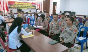 “Kepolres bersama KIP dan Wakapolres, Kabag Ops, Kapolsek serta instansi terkait, hari ini melihat kesiapan Gudang logistik dan Keamanan serta logistik Pemilu yang sudah masuk ke Gudang KIP.