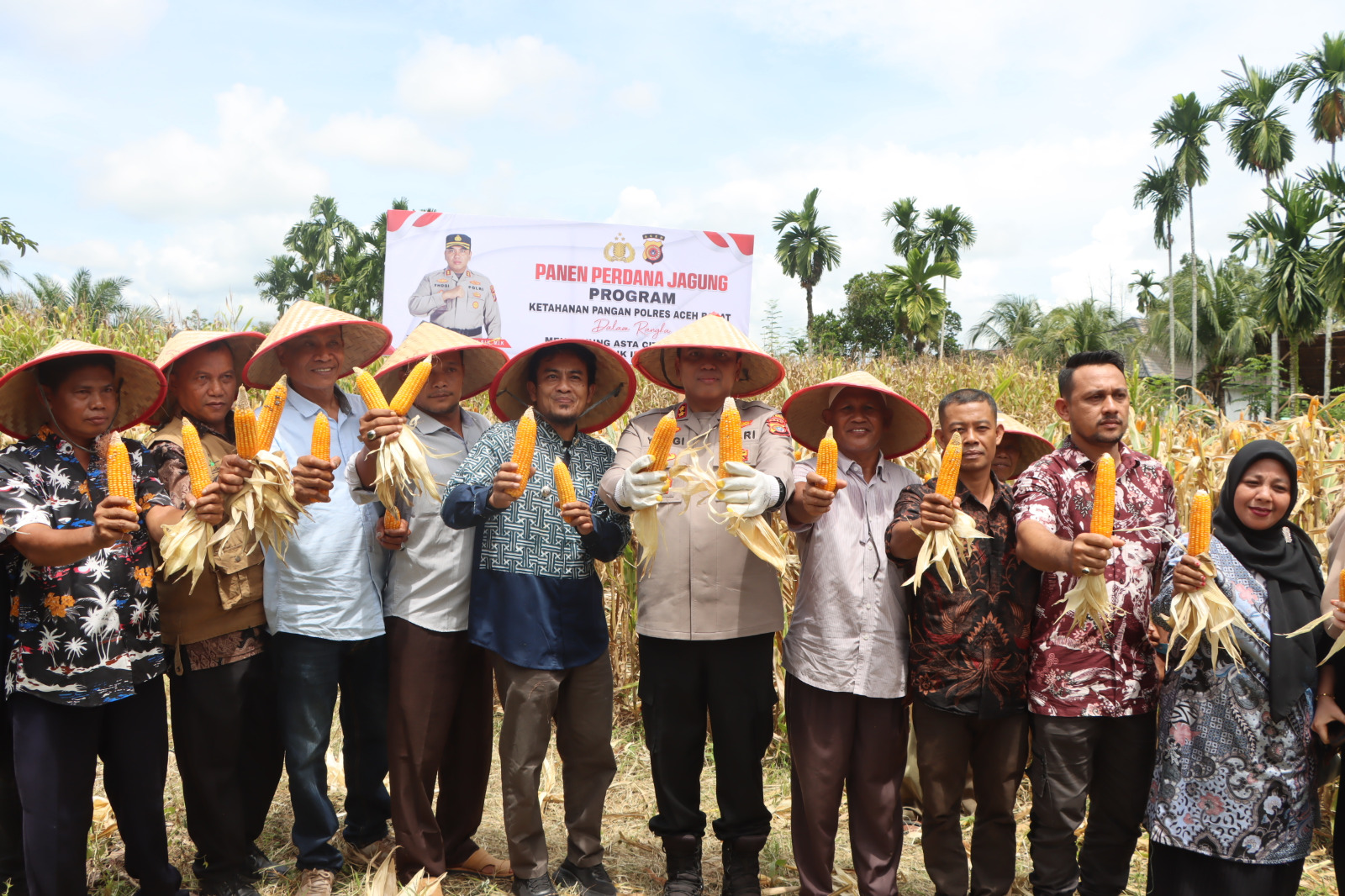 Sepertihalnya kali ini, Kapolres Aceh Barat AKBP Yhogi Hadisetiawan, S.I.K., M.I.K., melakukan panen perdana jagung, di Lahan Ketahanan Pangan Kelompok Tani Rezeki Beusare, Gampong Padang Sikabu Kecamatan Kaway XVI, Kabupaten Aceh Barat.