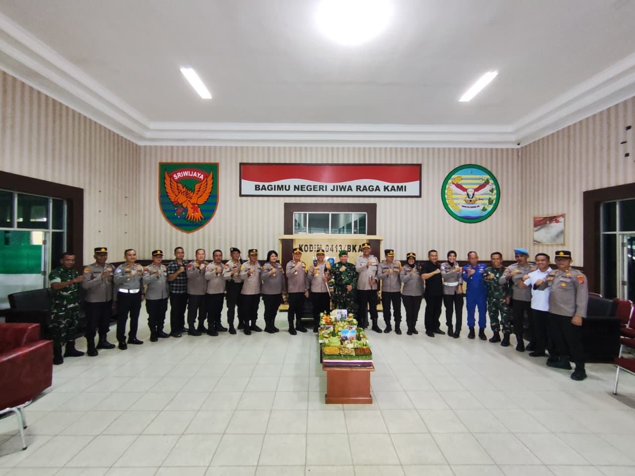 Bangka – Semangat sinergitas dan soliditas antara Tentara Nasional Indonesia (TNI) dan Kepolisian Republik Indonesia (Polri) khususnya Polres Bangka semakin terasa di Kabupaten Bangka. Dalam rangka memperingati Hari Jadi TNI ke-80, Kapolres Bangka AKBP Deddy Dwitiya Putra beserta Pejabat Utama Polres Bangka memberikan Ucapan dan kejutan kepada Dandim 0413 Bangka, Bertempat di Makodim 0413 Bangka (Pangkalpinang), Minggu (5/10/2025).