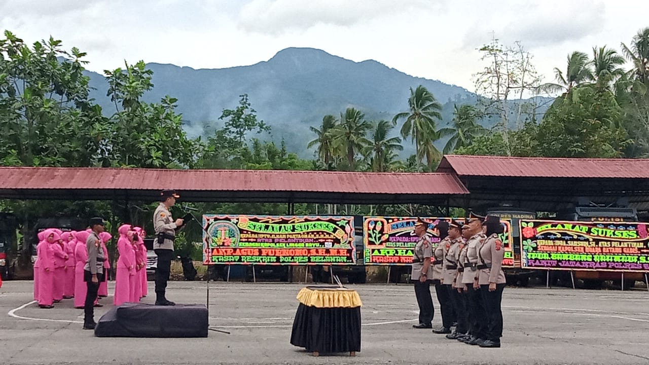 Sertijab tersebut meliputi jabatan Kabag Ops, Kapolsek Panyabungan Selatan, Kapolsek Lingga Bayu, serta penyerahan jabatan Kapolsek Muara Batang Gadis. Kegiatan ini juga dirangkai dengan pelantikan Kasiwas, Kasihumas, dan Kasikum Polres Madina.
