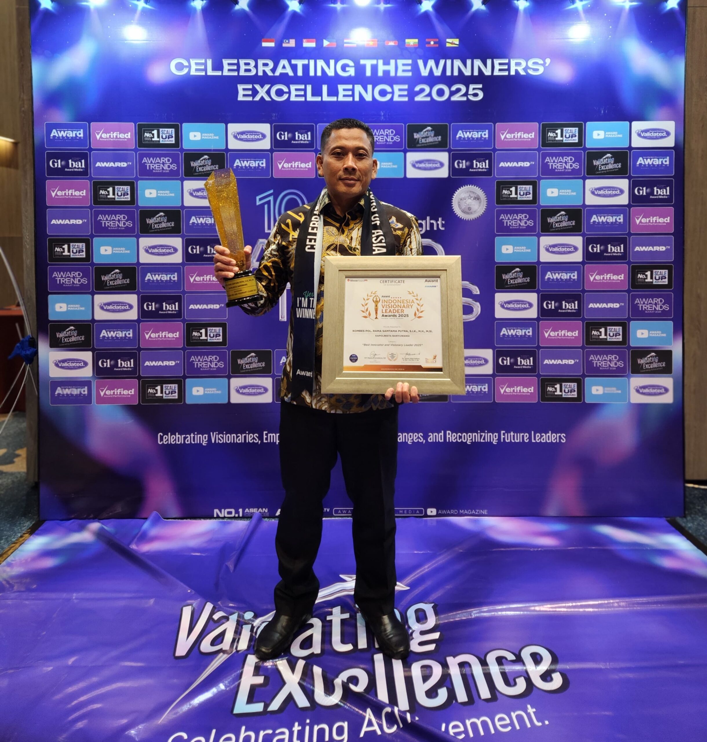 Banyuwangi, Metrozone.net- Kapolresta Banyuwangi, Kombes Pol. Rama Samtama Putra, S.I.K., M.Si., M.H., menerima penghargaan bergengsi “Inspiring Professional & Leadership Award 2025” dengan kategori “Best Innovator and Visionary Leader 2025”.