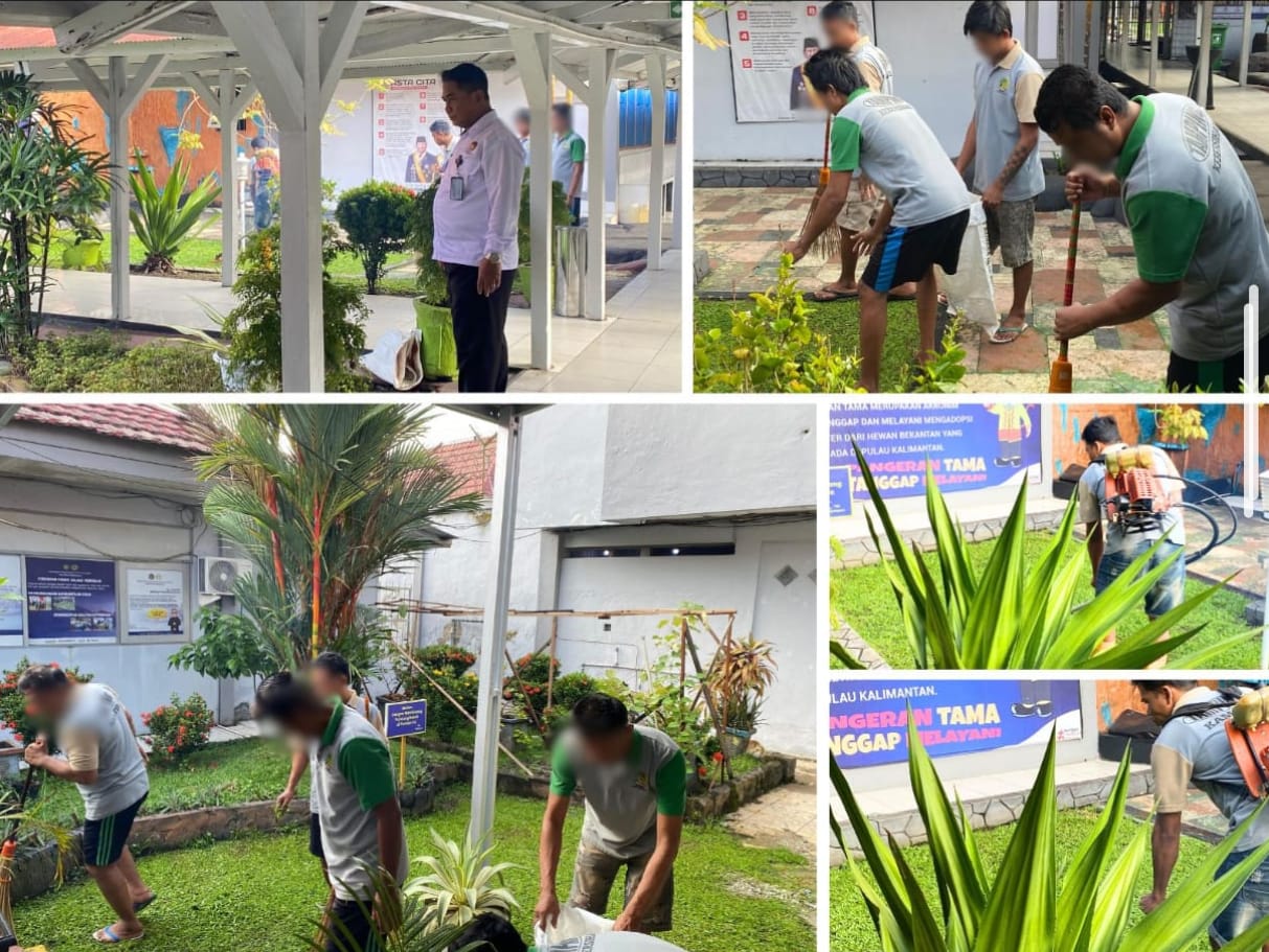 Kegiatan ini merupakan bagian dari rutinitas pengawasan dan penguatan kedisiplinan dalam merawat fasilitas umum, termasuk taman yang menjadi bagian penting dari wajah Lapas Banjarmasin. (Humas Lapas Banjarmasin)