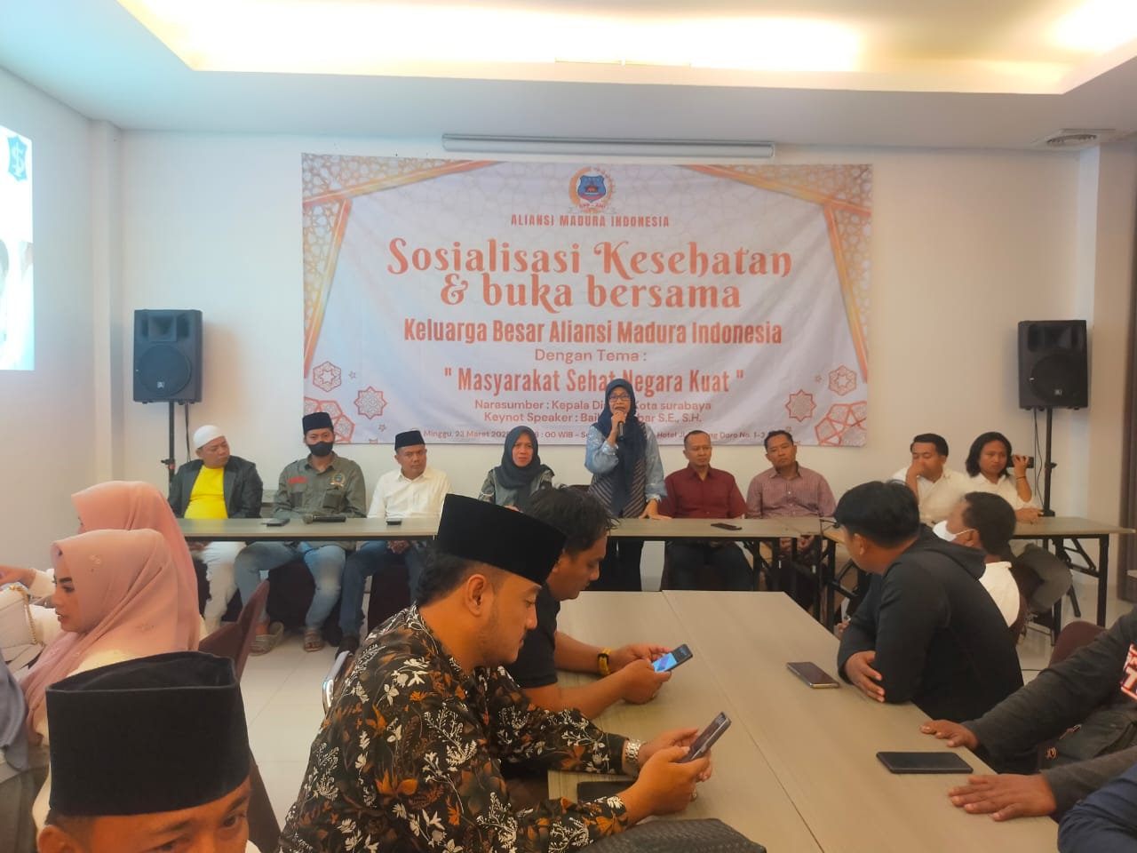Sementara ibu Kepala Bidang kesehatan Masyarakat Dinas Kesehatan Kota Surabaya, dr. Kartika Sri Redjeki, M.Kes. perwakilan yang datang di acara AMI ini menyampaikan, bahwasanya kegiatan sosialisasi ini bertujuan untuk meningkatkan kesadaran masyarakat tentang pentingnya kesehatan dan sangat mengapresiasi kegiatan Aliansi Madura Indonesia tersebut.