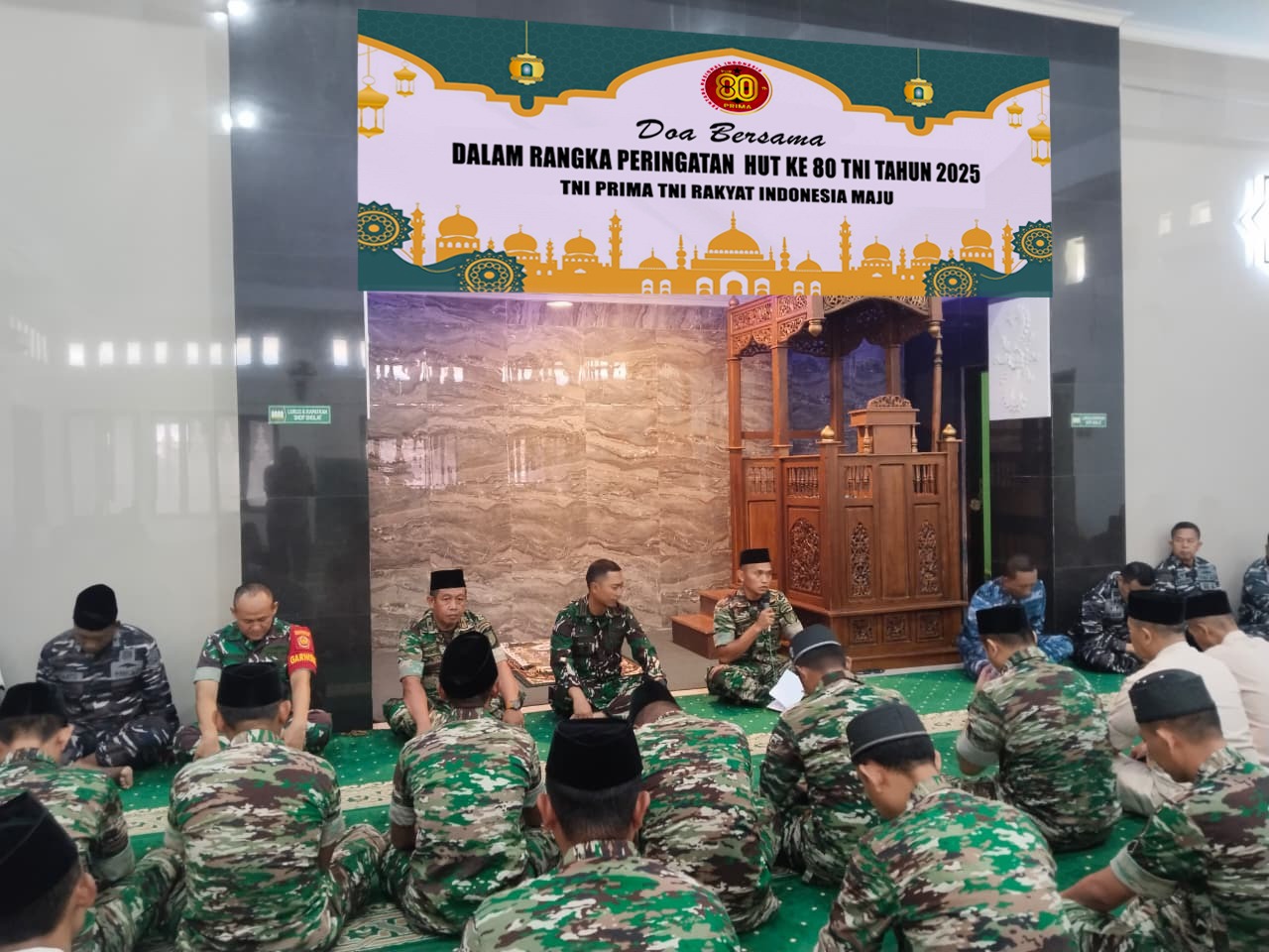 Dalam suasana khidmat, seluruh peserta memanjatkan doa bersama sebagai ungkapan rasa syukur atas perjalanan panjang TNI yang telah mengabdi selama delapan dekade untuk bangsa dan negara. Doa juga dipanjatkan agar TNI senantiasa diberi kekuatan dan keberkahan dalam menjalankan tugas menjaga keutuhan Negara Kesatuan Republik Indonesia (NKRI).