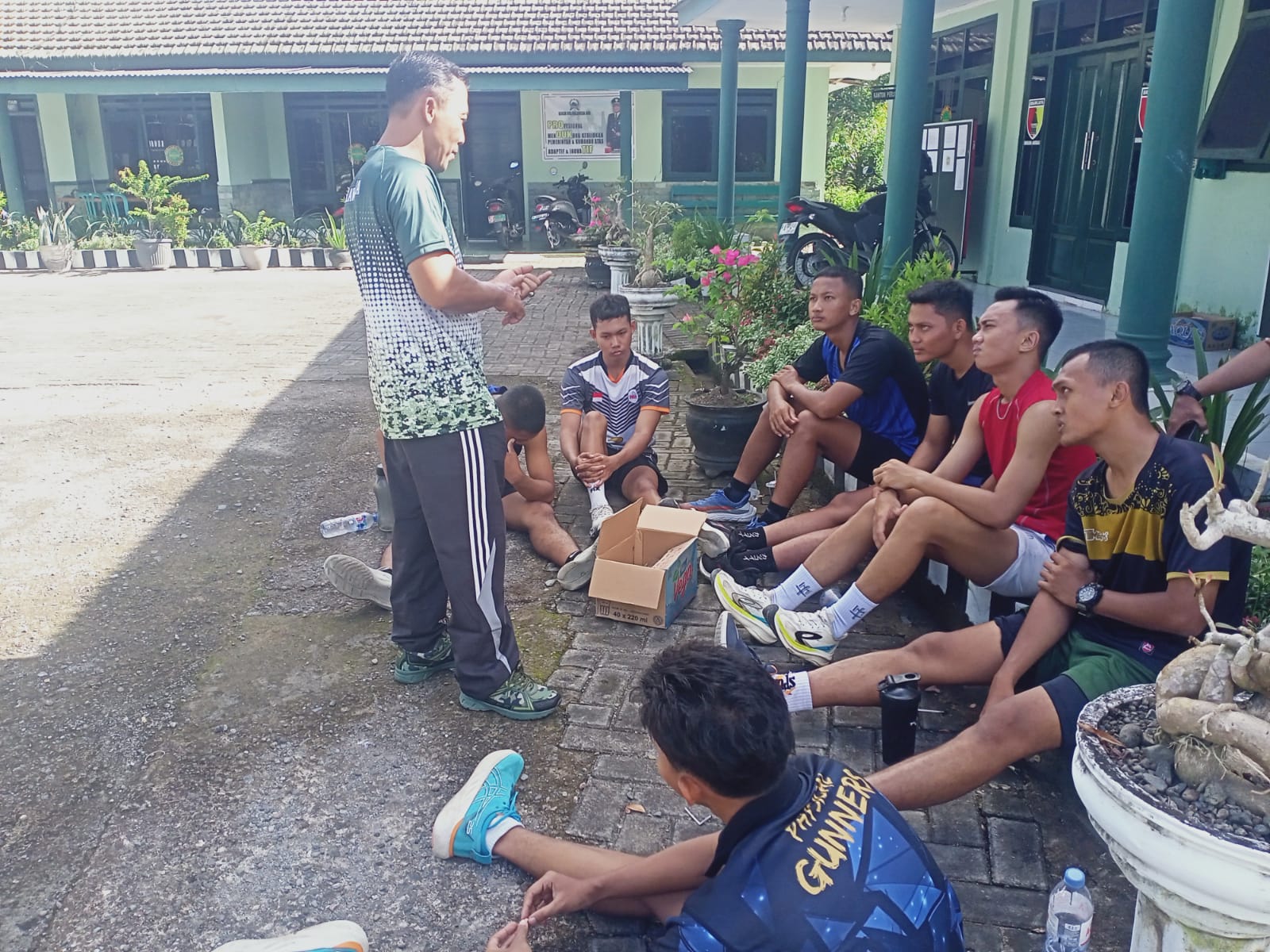 Kegiatan yang bertempat di Markas Koramil 0825/09 Tegaldlimo ini dipimpin langsung oleh dua anggota Koramil yang berpengalaman, Peltu M. Harun Rofiq dan Koptu Mabrur Hadi. Pembinaan diawali dengan senam peregangan ringan untuk mempersiapkan otot sebelum melanjutkan ke sesi latihan fisik yang lebih berat.