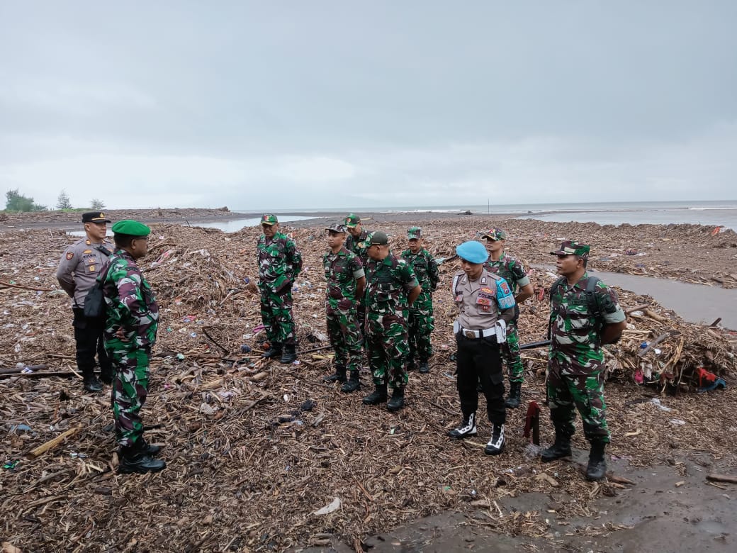 Koramil 0825/14 Kabat Bersama Polsek Kabat Sisir Pantai Pondoknongko Untuk Bantu Pencarian Korban Kapal Tenggelam Di Selat Bali