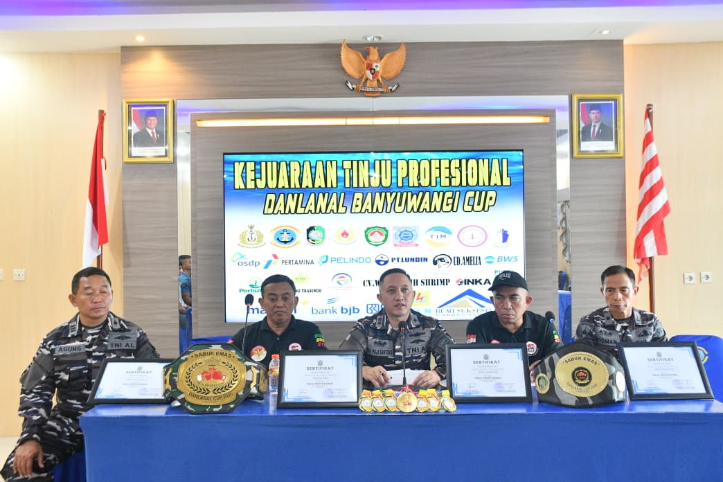 Banyuwangi, Metrozone.net- Pangkalan TNI Angkatan Laut (Lanal) Banyuwangi sukses menggelar Kejuaraan Tinju Profesional memperebutkan Sabuk Emas Danlanal Banyuwangi Cup Tahun 2026. Kegiatan berlangsung di Gedung Serba Guna Mako Lanal Banyuwangi, Jl. Raya Situbondo No. 54 Ketapang, Banyuwangi, Kamis (12/2/2026).
