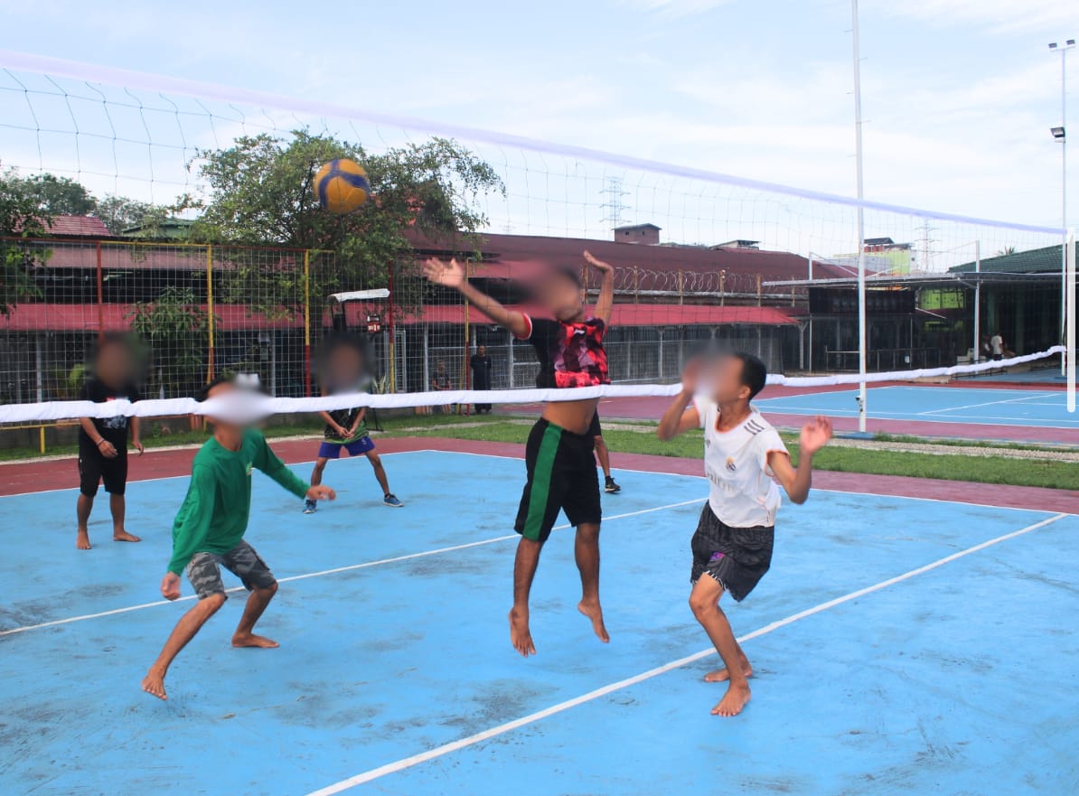 Suasana pagi di Lembaga Pemasyarakatan (Lapas) Kelas IIA Banjarmasin tampak semarak pada Rabu (09/07). Sejumlah warga binaan mengikuti latihan olahraga bola voli sebagai bagian dari kegiatan pembinaan jasmani yang rutin dilaksanakan.
