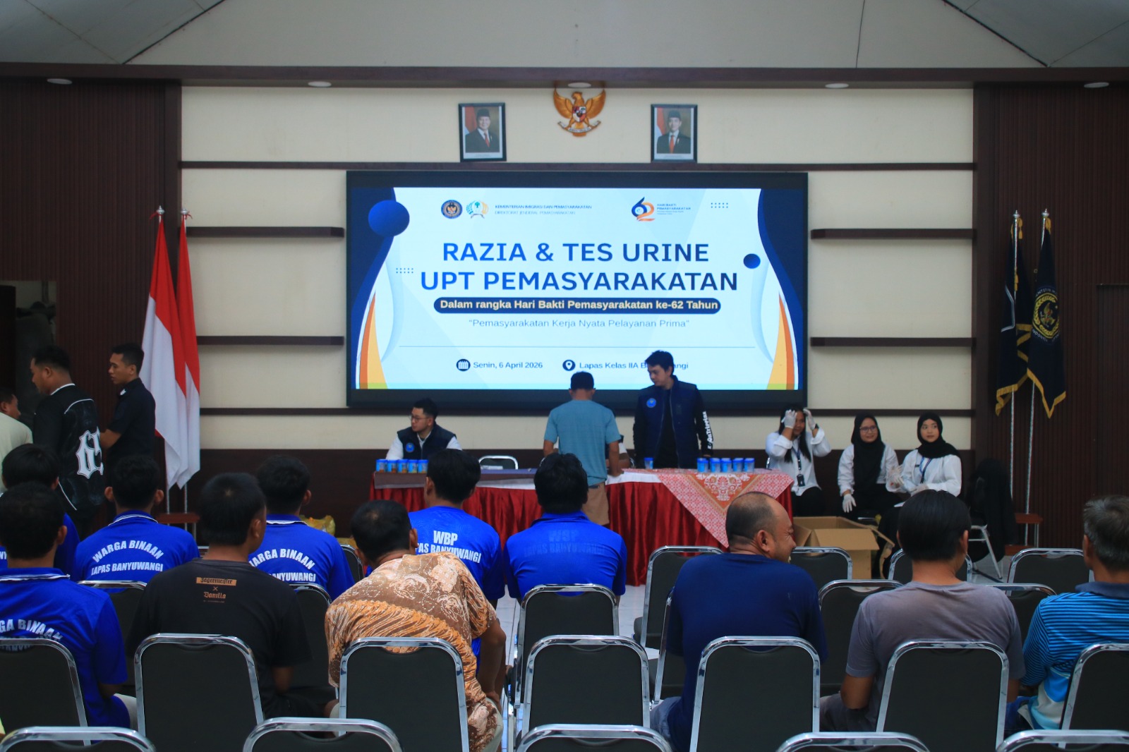 Banyuwangi, Metrozone.net– Lembaga Pemasyarakatan (Lapas) Kelas IIA Banyuwangi menggelar tes urine dadakan bagi petugas dan warga binaan pada Senin (6/4) malam, sebagai upaya deteksi dini penyalahgunaan narkotika. Aksi yang menggandeng TNI, Polri, dan BNNK ini dilakukan dalam rangka memperingati Hari Bhakti Pemasyarakatan ke-62.