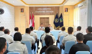 Suasana haru dan khidmat menyelimuti kegiatan pelepasan pegawai yang berpindah tugas di Lembaga Pemasyarakatan (Lapas) Narkotika Kelas IIA Karang Intan, Selasa (20/1). Kegiatan tersebut dilaksanakan di Aula Atas Lapas Narkotika Karang Intan sebagai bentuk penghormatan dan apresiasi atas pengabdian dua pegawai, yakni Ferry Maydani dan Geryn Kemal Pasha Bangun, yang akan melanjutkan tugas di satuan kerja baru.