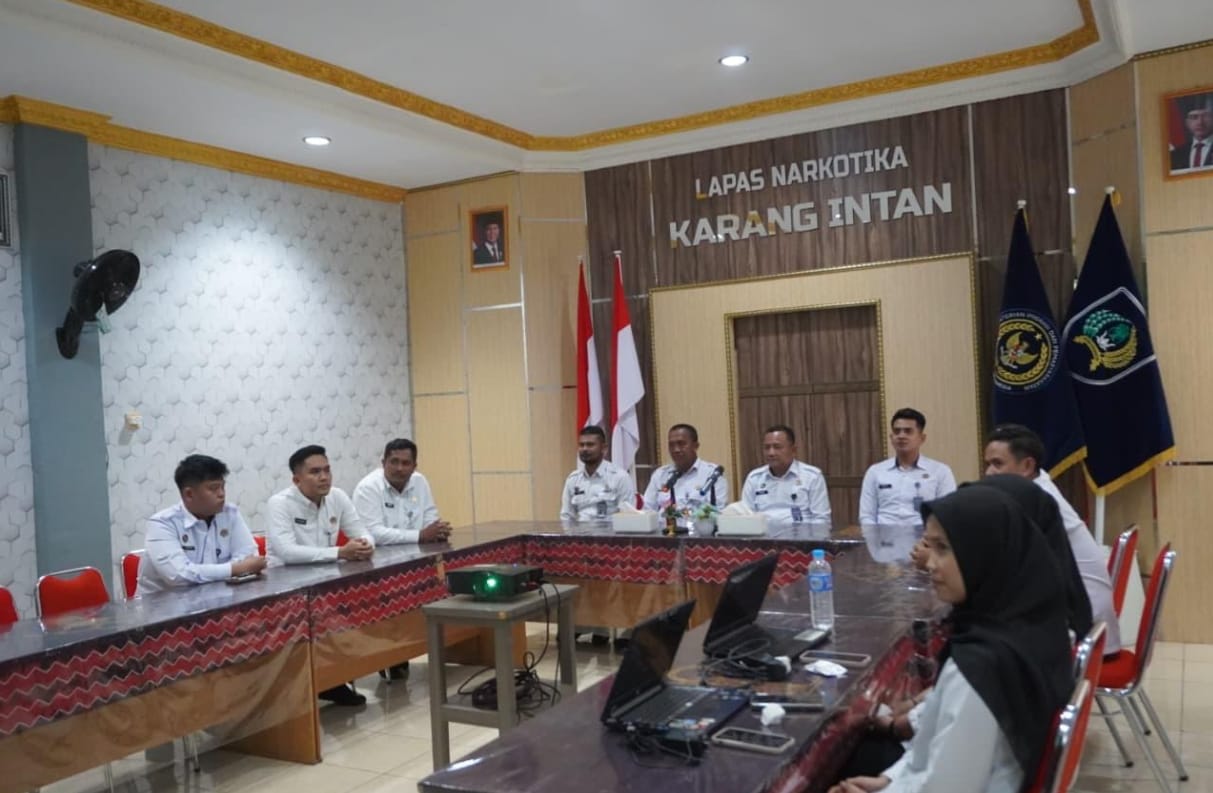 Kepala Lembaga Pemasyarakatan (Kalapas) Narkotika Kelas IIA Karang Intan, Yugo Indra Wicaksi, bersama pejabat struktural mengikuti Penutupan Rapat Koordinasi (Rakor) Evaluasi dan Pengendalian Kinerja Tahun 2025 yang diselenggarakan oleh Kementerian Imigrasi dan Pemasyarakatan, Selasa (16/12). Kegiatan tersebut diikuti secara virtual melalui aplikasi Zoom Meeting dari Aula Atas Lapas Narkotika Karang Intan.