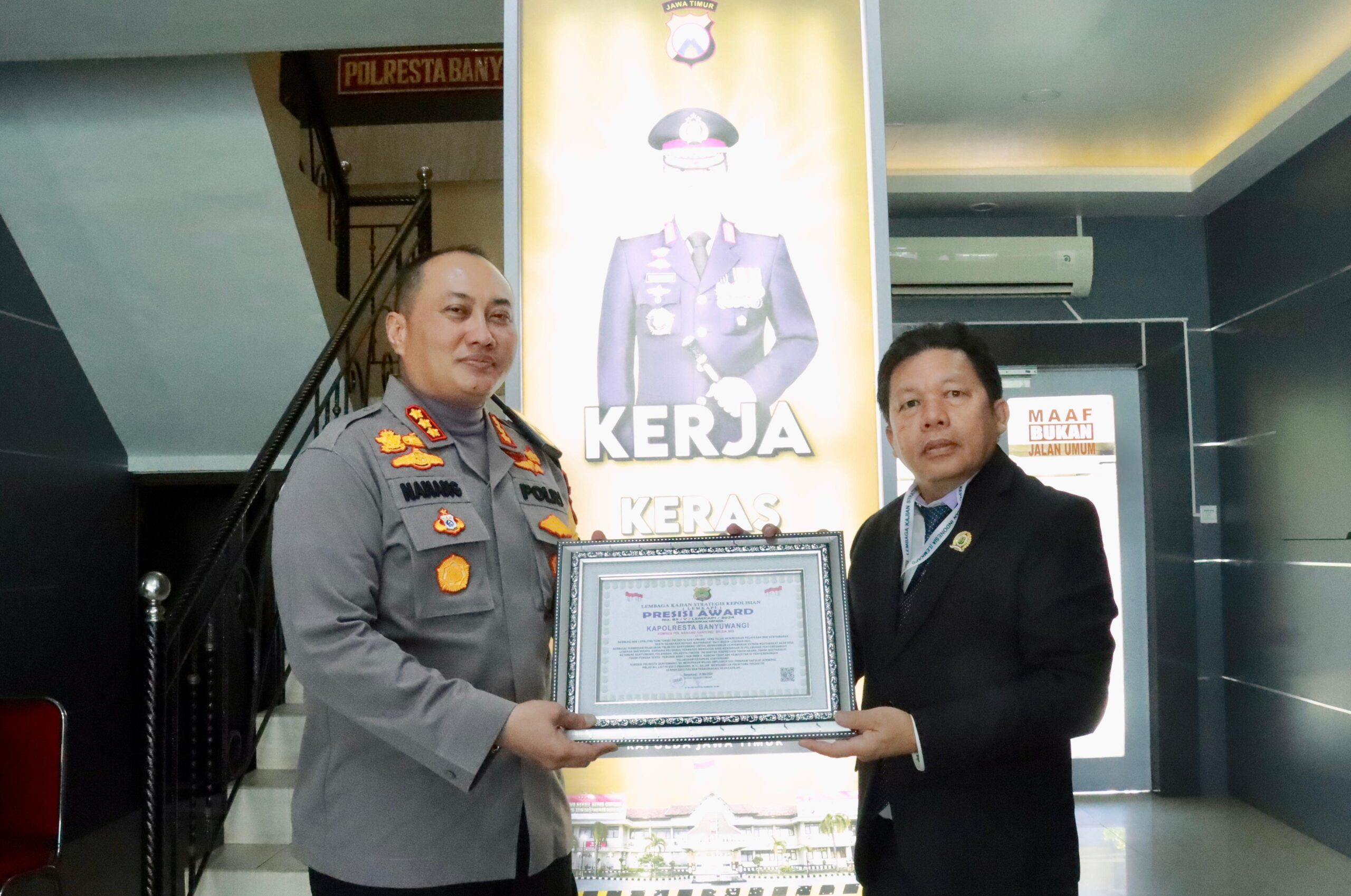 Penyerahan penghargaan ini berlangsung di Ruang Loby Utama Polresta Banyuwangi, dan diterima langsung oleh Kapolresta Banyuwangi, Kombes Pol Nanang Haryono beserta jajaran Pejabat Utama, Selasa (14/5).