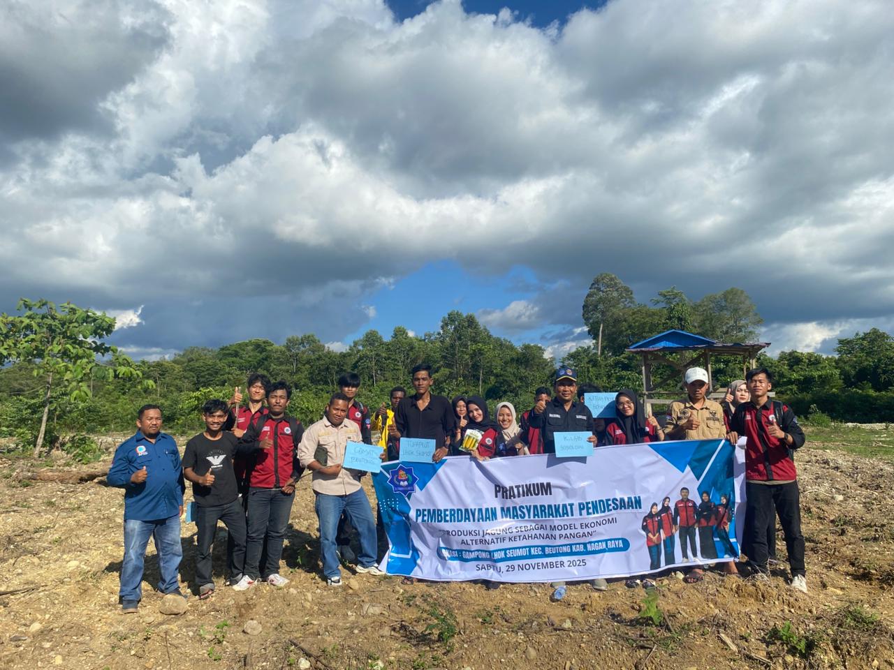 Dalam kegiatan Praktikum Mata Kuliah Pemberdayaan Masyarakat Pedesaan, mahasiswa mengajak petani melalui aparatur gampong menginisiasi model pemberdayaan ekonomi alternatif berbasis jagung pakan di Gampong Lhok Seumot, Kecamatan Beutong, Kabupaten Nagan Raya. Kegiatan yang dilaksanakan pada hari Sabtu, 29 November 2025.