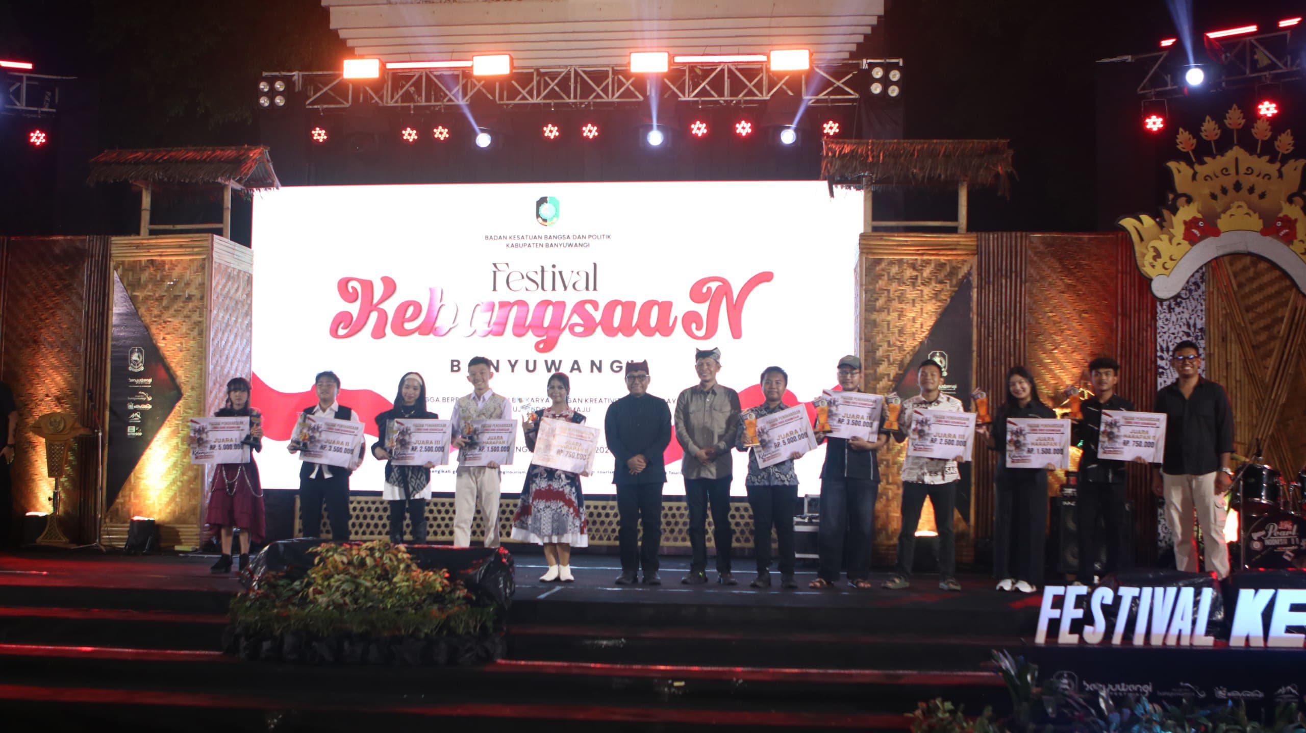 Puncak malam ditutup dengan pengumuman pemenang lomba, pertunjukan drama tari Nusantara, dan kolaborasi berbagai suku seperti Mandar, Jawa, dan Madura. Festival Kebangsaan 2025 berlangsung aman, tertib, dan penuh kegembiraan. Semangat persatuan yang dipancarkan dari panggung Gesibu Blambangan menjadi cermin bahwa Banyuwangi adalah rumah bagi keberagaman yang hidup, bergerak, dan berkarya bersama menuju Indonesia Maju.
