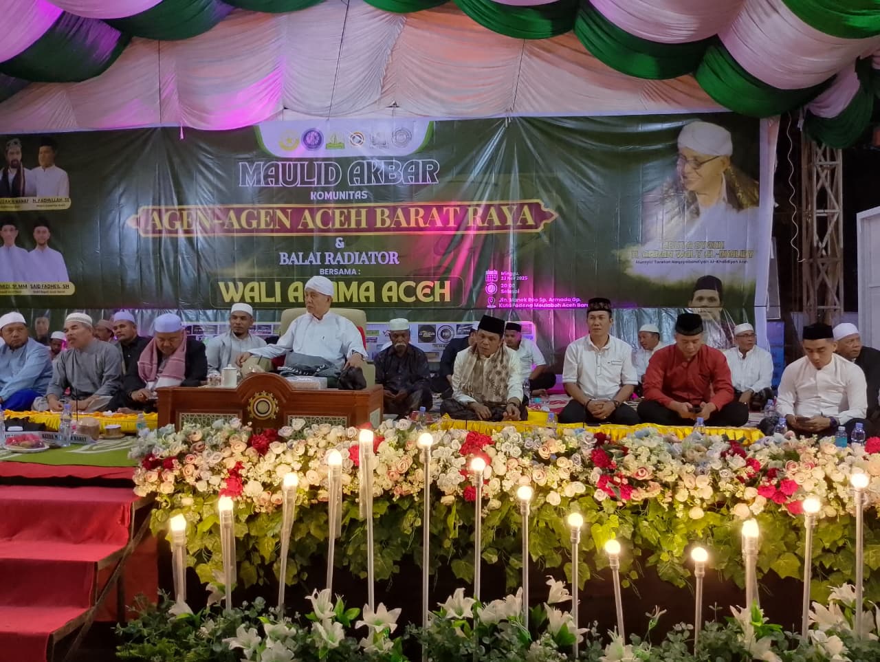 Aceh Barat (METROZONE.net) – Sebagai wujud kecintaan terhadap Baginda Rasulullah, Dandim 0105/Abar Letkol Inf S Kembaren,S.E.,M.I.P.,CFrA., diwakili Kasdim Mayor Cke Teguh Widodo menghadiri acara Peringatan Maulid Akbar Nabi Besar Muhammad SAW 1447 H yang diprakarsai oleh Komunitas Agen-Agen Aceh Barat Raya dan Balai Radiator di Simpang Armada Jalan Manek Roo Desa Kuta Padang Kecamatan Johan Pahlawan, Minggu malam (23/11/2025)
