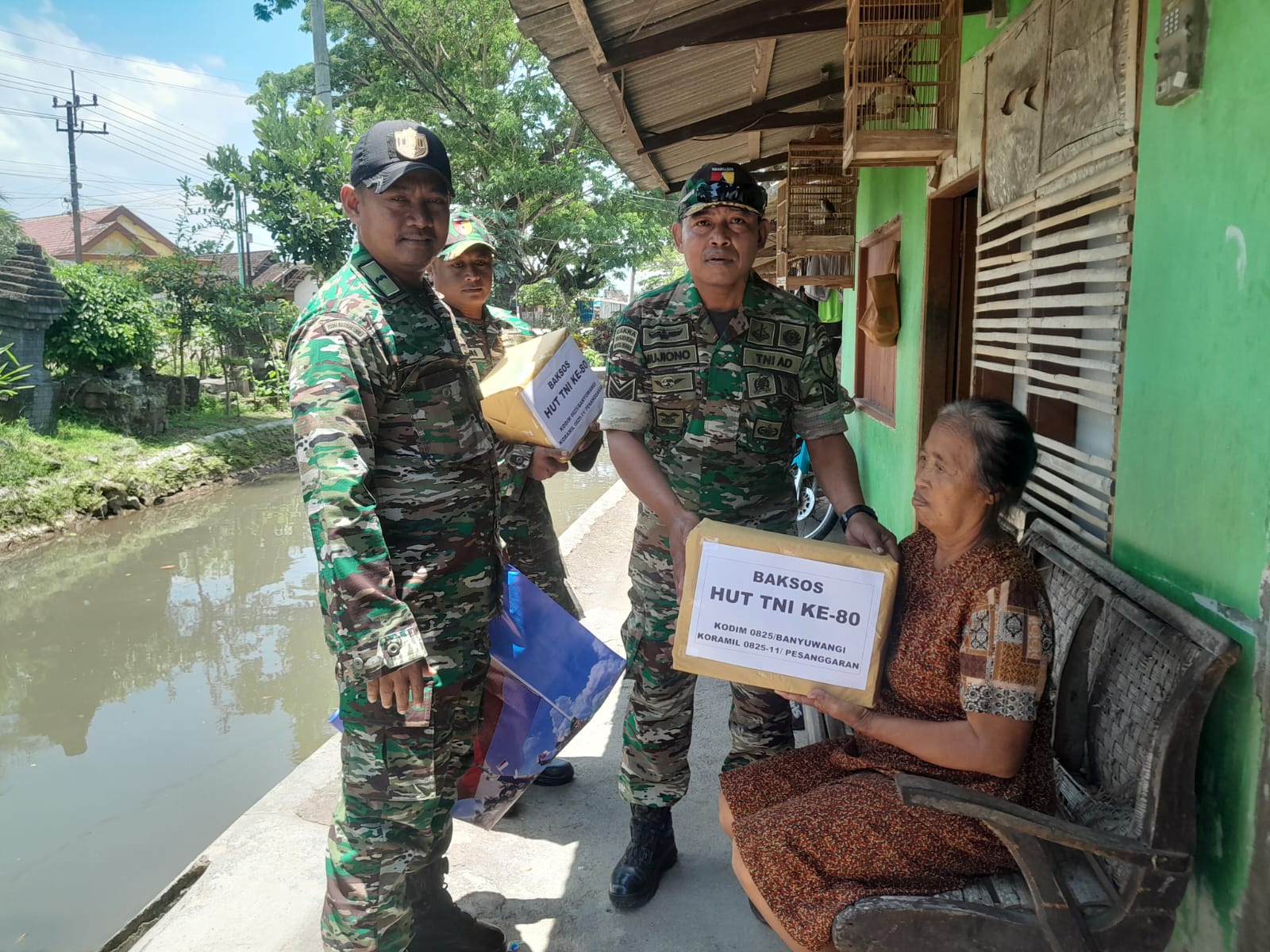 Pesanggaran, Metrozone.net- Dalam Rangka memperingati HUT ke-80, Koramil 0825-11/Pesanggaran menggelar berbagi berkah ke warga masyarakat sekitar dalam tajuk bakti sosial berupa pembagian paket sembako di bertempat di rumah warga masyarakat Kecamatan Pesanggaran, Sabtu (04/10/2025) pukul 11.00 wib.