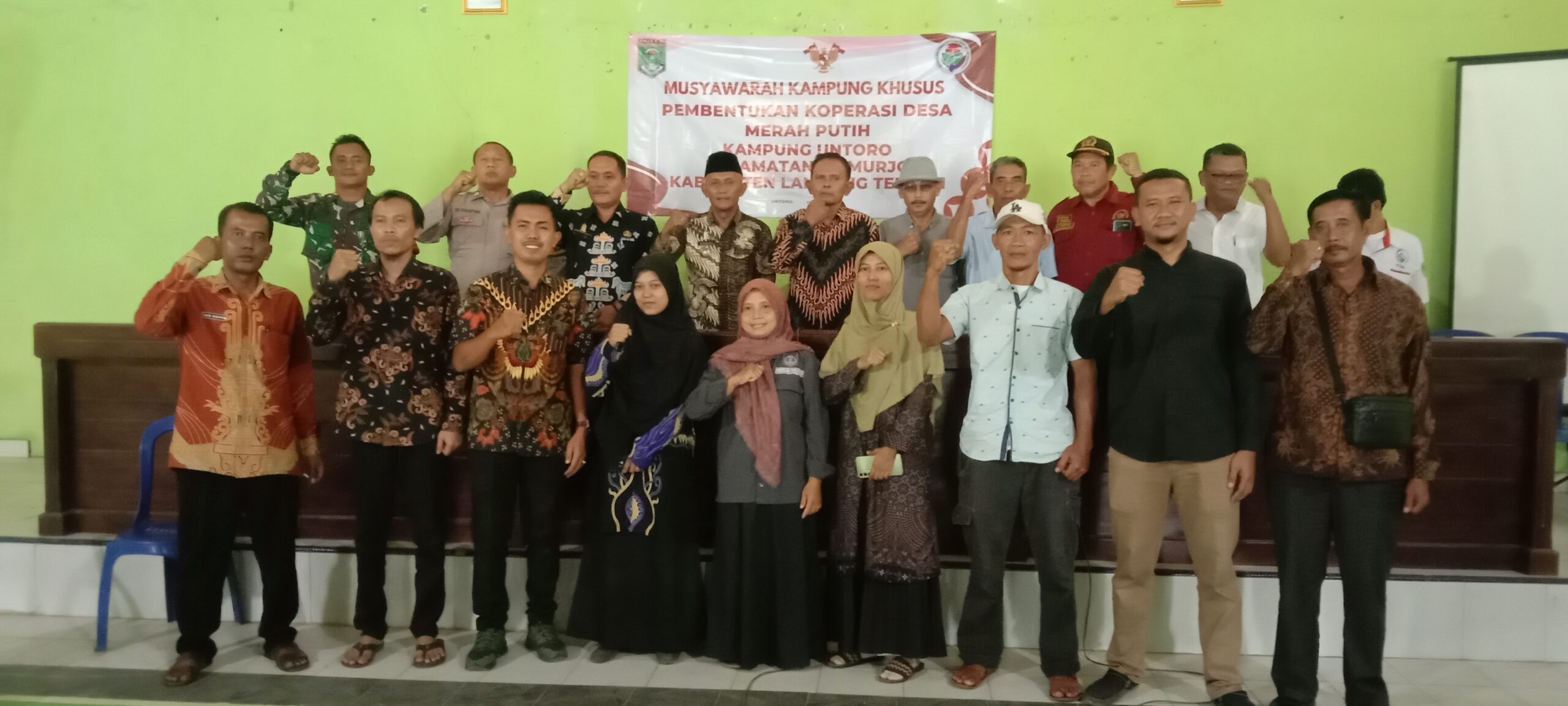 di Dampingi Sekcam Suhaimi,mewakili Camat trimurjo dan Bhabinsa,Bhabinkamtibmas,serta pendamping,serta jajaran pemerintahan kampung untoro, warga masyarakat kampung untoro yang hadir,berhasil dan sepakat membentuk susunan pengurus Koperasi Merah Putih Kampung Untoro,secara aklamasi,.