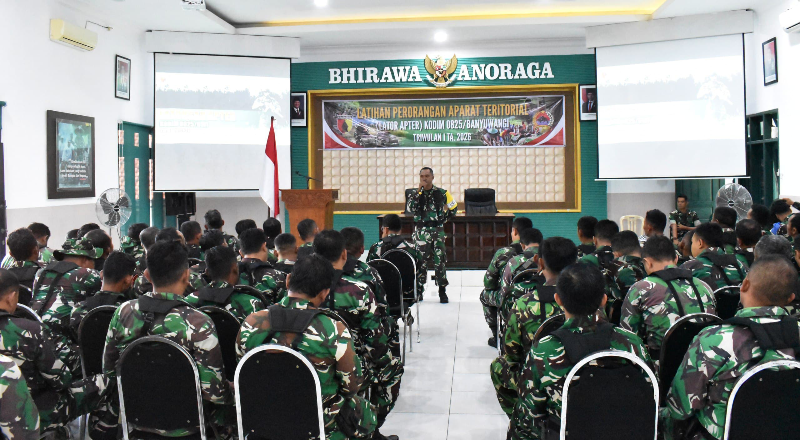 Banyuwangi, Metrozone.net- Komando Distrik Militer (Kodim) 0825/Banyuwangi menggelar Latihan Perorangan Aparat Teritorial (Lator Apter) Triwulan I Tahun 2026 sebagai bagian dari upaya berkelanjutan meningkatkan kualitas dan profesionalisme prajurit teritorial. Kegiatan ini dilaksanakan pada Jumat (30/1/2026) bertempat di Aula Panglima Sudirman, Makodim 0825/Banyuwangi, Jalan RA Kartini No. 02, Kepatihan, Kabupaten Banyuwangi.