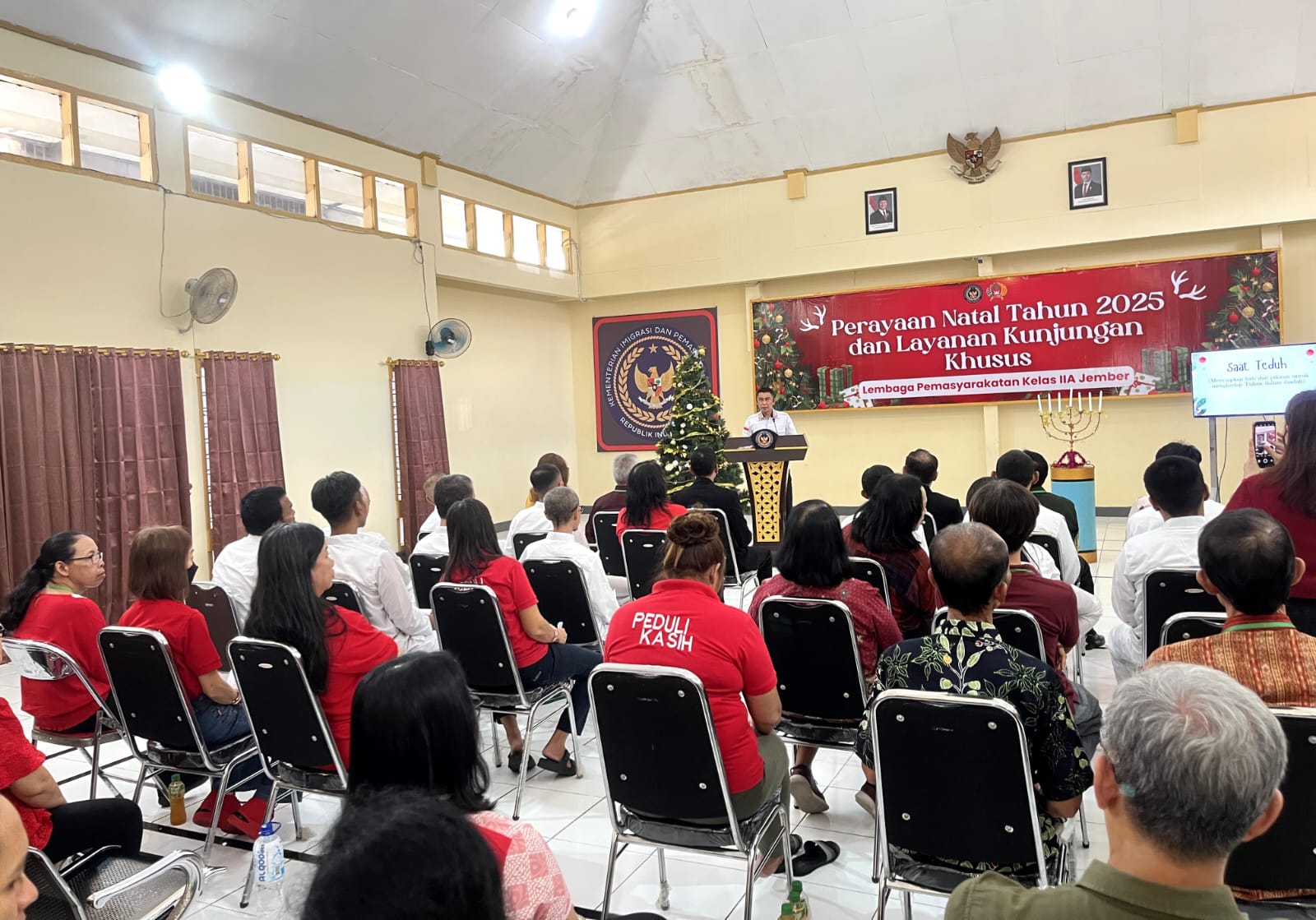 Selain layanan kunjungan khusus hari Natal Tahun 2025, Lapas Jember juga menggelar Ibadah Natal yang diikuti oleh warga binaan beragama Kristen dan Katolik dengan penuh khidmat. Ibadah dipimpin oleh Pendeta, Djoni Febrianto, dengan pengawasan dari petugas Lapas. Beliau menuturkan bahwa perayaan Natal di dalam Lapas menjadi sarana penguatan iman dan pengharapan bagi warga binaan.
