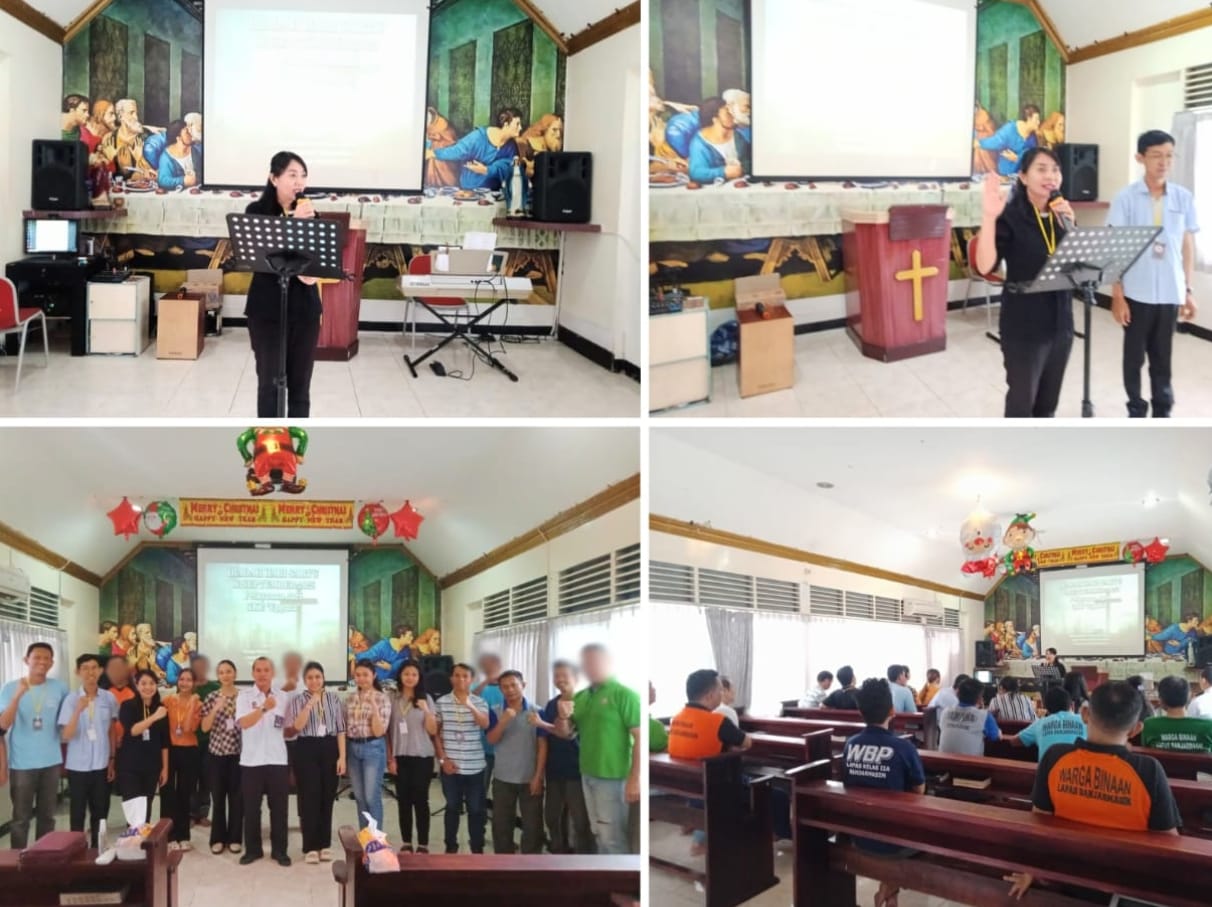 Sabtu (06/09/2025), Warga Binaan Pemasyarakatan (WBP) Kristiani Lapas Kelas IIA Banjarmasin mengikuti ibadah rutin bulanan pelayanan dari Gereja Kalimantan Evangelis (GKE) “Eppata”. Kegiatan berlangsung di Gereja Oikumene Lapas dengan penuh khidmat, dihadiri oleh seluruh WBP Kristiani bersama pembina gereja.
