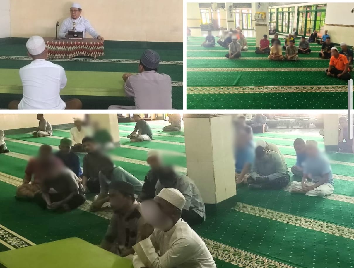 Masjid Baabud Taqwa Lapas Kelas IIA Banjarmasin kembali menjadi pusat pembinaan rohani warga binaan pada Selasa (05/08). Dalam kajian rutin siang itu, Ustadz Rahmana hadir menyampaikan tausyiah agama yang bertemakan pentingnya zikir kepada Allah SWT sebagai sumber ketenangan hati.