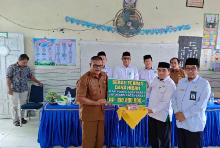 Meulaboh, METROZONE.net – Pemerintah Kabupaten Aceh Barat melalui Dinas Pendidikan setempat menyerahkan bantuan Dana Hibah sebesar Rp.100 juta kepada Madrasah Ibtidaiyah Negeri (MIN) 2 Aceh Barat di Kecamatan Kaway XVI Kabupaten setempat. Dana Hibah tersebut diserahkan Plt Kadis Pendidikan Aceh Barat melalui Kabid Dikdas Teuku Raflizar, S.Pd, PKn yang diterima oleh Kepala MIN 2 Aceh Barat pada Senin 13 Januari 2025 di sekolah setempat