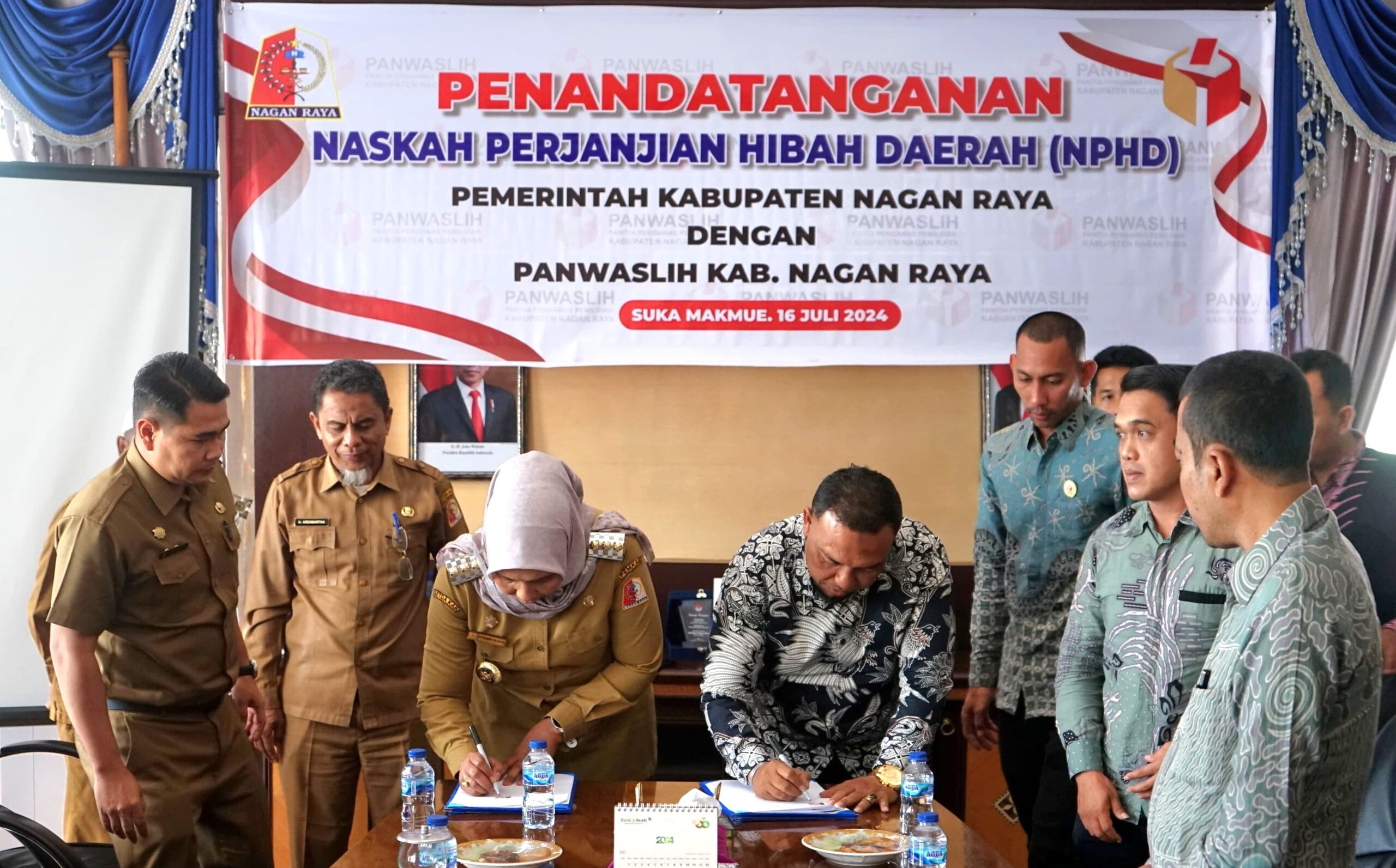 Acara penandatanganan NPHD tersebut dihadiri oleh Sekretaris Daerah (Sekda) Ardimartha, sejumlah kepala perangkat daerah, anggota Panwaslih Kabupaten Nagan Raya, serta para pejabat terkait lainnya.