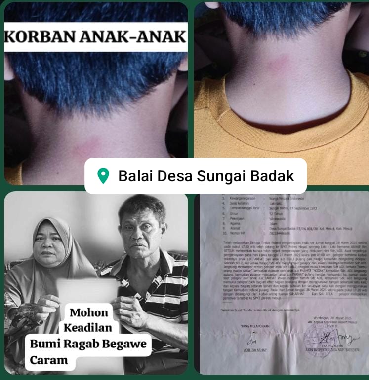 Mesuji, Lampung – Kasus penganiayaan terhadap anak di bawah umur kembali terjadi di Kabupaten Mesuji, Lampung. Seorang anak berinisial FT dan DI, menjadi korban penganiayaan yang diduga dilakukan oleh seorang pelaku berinisial AD di Desa Sungai Badak, Kecamatan Mesuji. Senin, 06 Oktober 2025.
