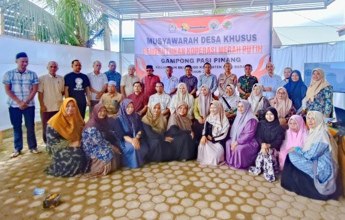 Kegiatan pembentukan koperasi desa merah putih di Desa Pasi Pinang di hadiri langsung oleh Kadis Perindagkop Khairuzzadi, Camat Meureubo Maimun,S.STP dan unsur Muspika Kecamatan setempat dan undangan terkait