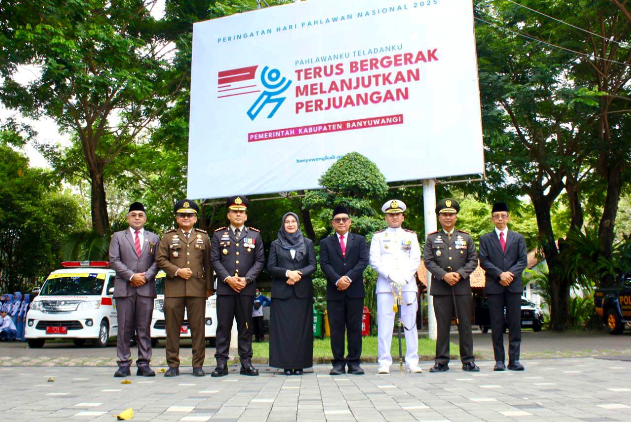 Usai kegiatan di TMP, Dandim Banyuwangi bersama Forkopimda Kabupaten Banyuwangi melanjutkan Upacara Peringatan Hari Pahlawan di Kantor Pemkab Banyuwangi. Upacara berlangsung tertib dan khidmat, menjadi wujud sinergi antara unsur pemerintahan, TNI, dan Polri dalam menjaga nilai-nilai kepahlawanan di tengah masyarakat.
