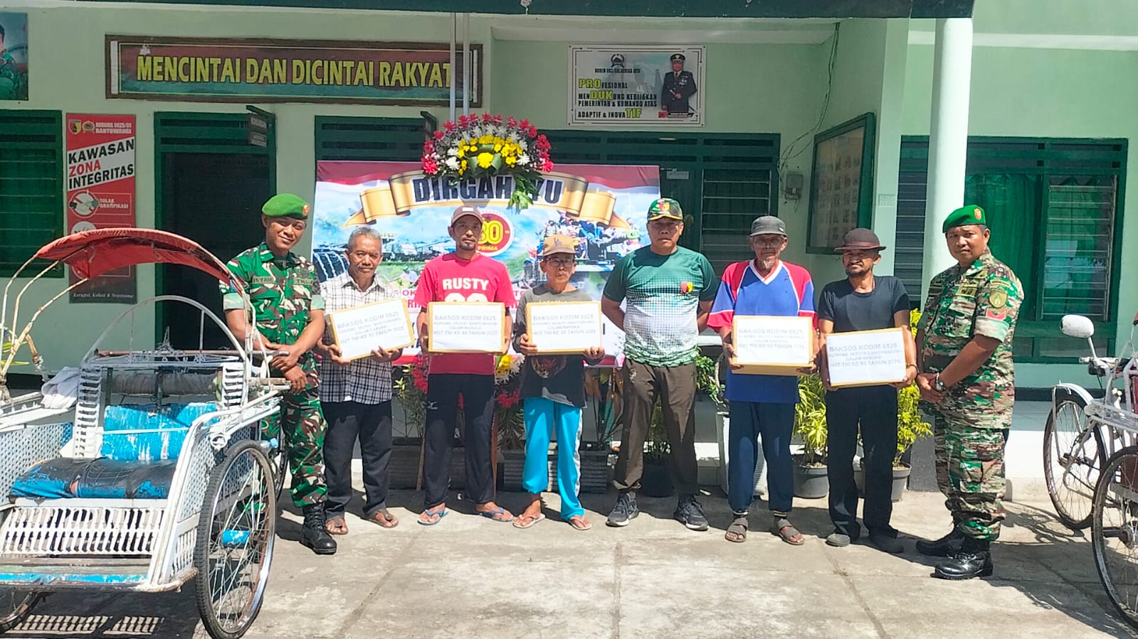 Peringati HUT TNI Ke-80 Tahun 2025 Koramil 0825/01 Banyuwangi Berbagi Sembako Dengan Tukang Becak