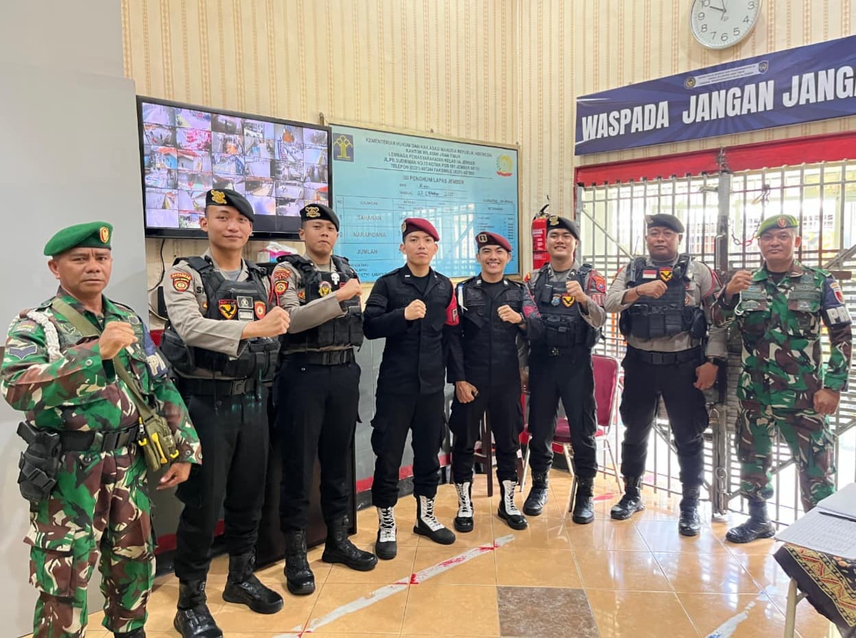 Jember, Metrozone.net- Dalam rangka memperkuat sinergi antar Aparat Penegak Hukum (APH), jajaran Kodim 0824 Jember dan Polres Jember melaksanakan bantuan pengamanan di Lembaga Pemasyarakatan (Lapas) Kelas IIA Jember, Kantor Wilayah Direktorat Jenderal Pemasyarakatan Jawa Timur, pada Jumat (05/12/2025). Kegiatan ini merupakan tindak lanjut dari perintah Direktur Jenderal Pemasyarakatan untuk meningkatkan deteksi dini serta menjaga stabilitas keamanan di seluruh Lapas dan Rutan.
