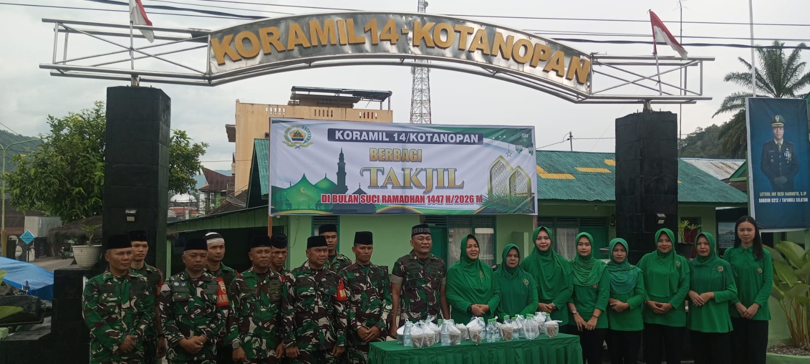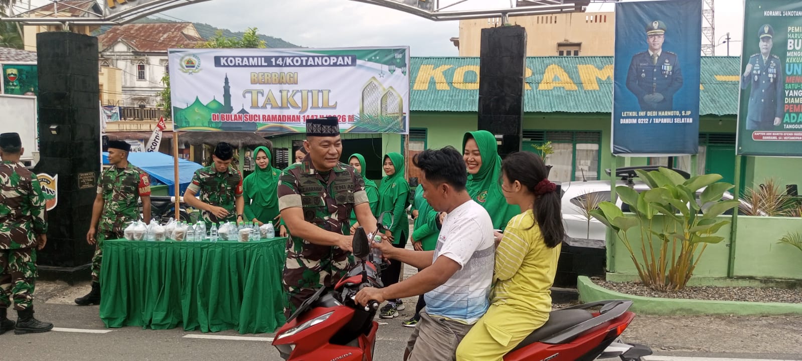 Rabu 4/2/2020 Sebagai bentuk kepedulian dan kebersamaan di bulan suci Ramadan, personil Koramil 14 Kotanopan bersama ibu-ibu Persit Kartika Chandra Kirana Ranting Kotanopan menggelar kegiatan berbagi takjil kepada masyarakat.Kegiatan tersebut dilaksanakan di depan Kantor Koramil 14 Kotanopan, yang berada di wilayah Kotanopan, Kabupaten Mandailing Natal.