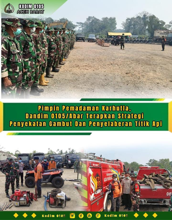 Dihadapan Ratusan tim gabungan, Dandim mengingatkan untuk mengutamakan faktor keamanan dan keselamatan. Kemudian Dandim menjabarkan strategi pemadaman dengan melakukan penyekatan satu jalur radius 50 meter guna memotong gambut, melakukan selaber cepat dengan memadamkan titik api hingga ke tengah lokasi.