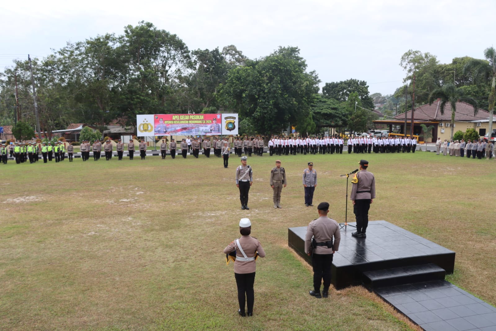 “Apel gelar pasukan bertujuan untuk mengetahui sejauh mana kesiapan personel maupun sarana dan prasarana pendukung lainnya, sehingga pelaksanaan operasi dapat berjalan secara optimal serta berhasil sesuai dengan tujuan dan sasaran yang telah ditetapkan”, Kompol Yosyua Surya Admaja.