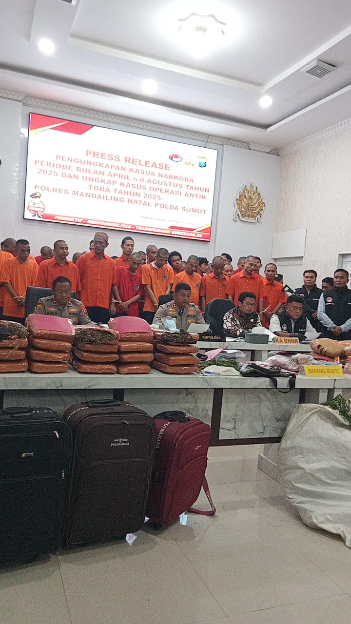 Polres Mandailing Natal, Sumatera Utara memaparkan langsung pengungkapan 36 kasus tindak pidana penyalah gunaan Narkotika di acara pres release bersama awak media. Selasa (12/08).