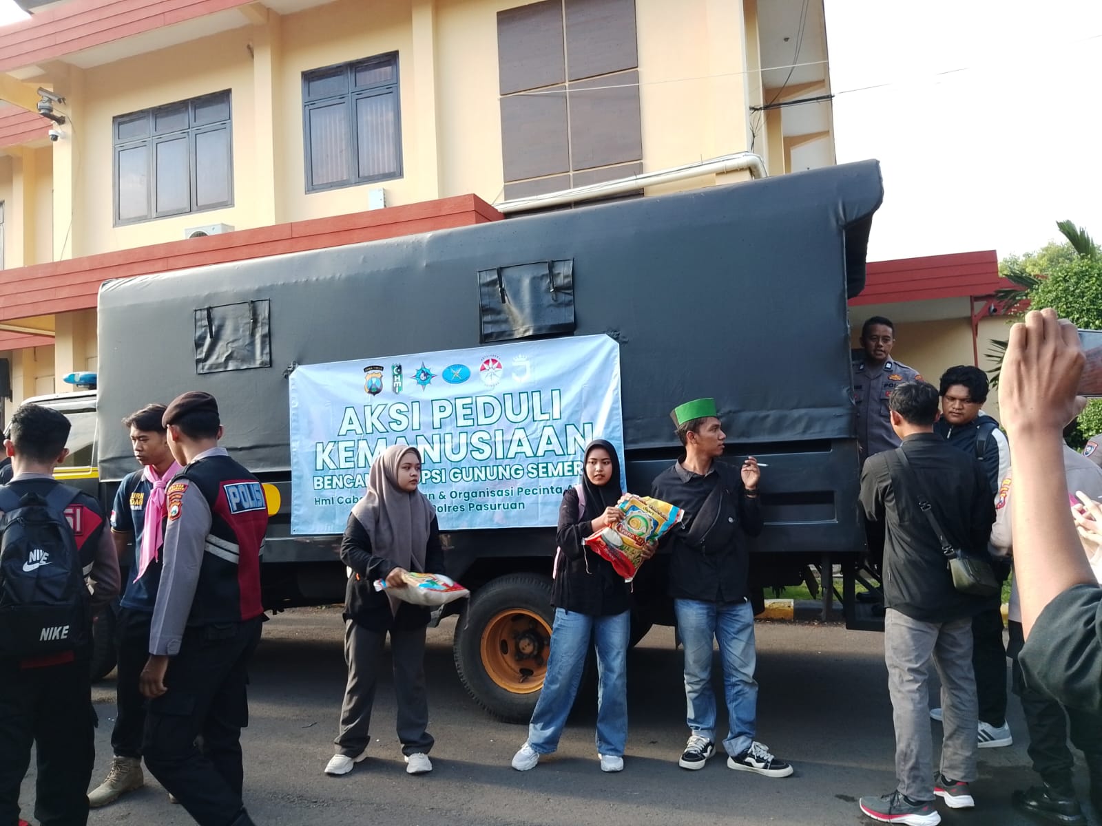 Seluruh bantuan diarahkan ke Posko Bantuan Erupsi Semeru di Balai Desa Supiturang, Kecamatan Pronojiwo, Kabupaten Lumajang. Aliansi mahasiswa yang terlibat antara lain HMI Cabang Pasuruan, RPA DOEA, MAPALA DEWA, MAPALUPAS, dan Jawa Dao. Rombongan dilepas oleh jajaran PJU Polres Pasuruan didampingi Waka Polres Kompol Andy Purnomo serta sejumlah pejabat kepolisian lainnya.